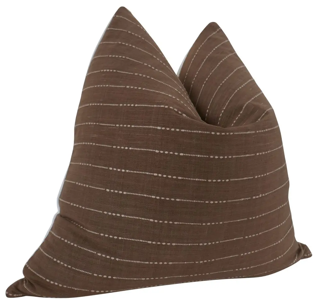 Exclusive to One Kings Lane: Cut and sewn by hand in California, this square pillow brings rich texture and quiet pattern to a room. Plushly filled Ultra-Plump feather-and-down insert, with an invisible zipper closure. Solid white, premium luxe 100% linen reverse side.