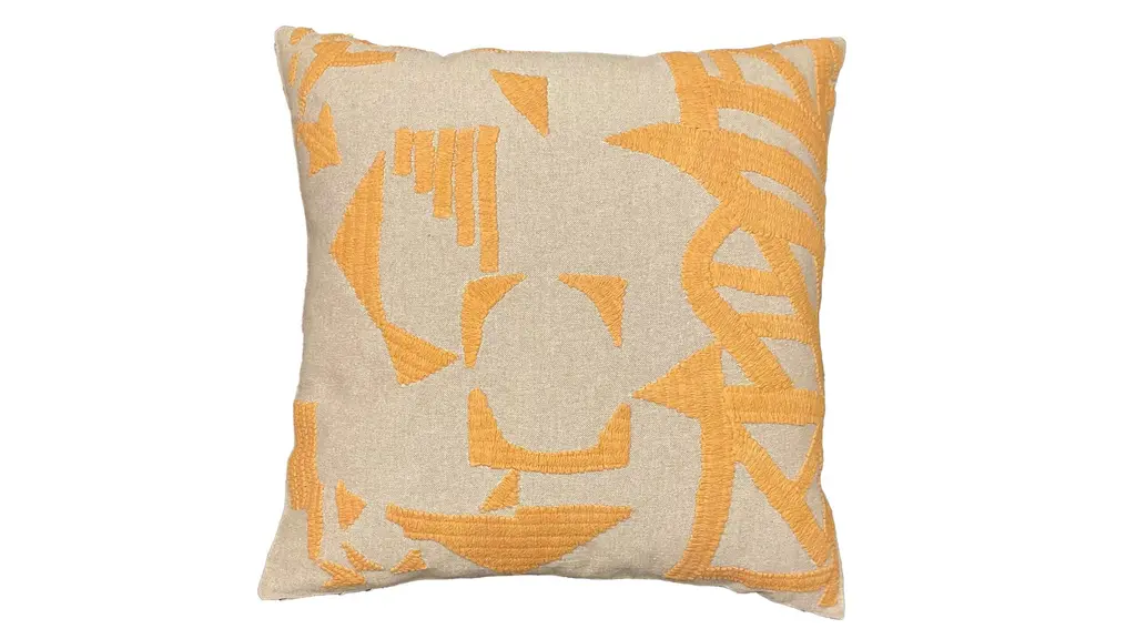 The Alya embroidered throw pillow showcases a playful arrangement of swirling curves and interconnected shapes, meticulously embroidered onto a soft and inviting cover. Available in a variety of earthy-tones, the design pops against its neutral foundation. Its abstract design serves as a unique statement piece, sparking conversation and infusing your space with an artistic vibe. This pillow is handcrafted by artisans in India. The cover is made from 100% cotton and includes a down-alternative polyester fiber insert, so it’s ready to style right out of the box. Spot clean or professional dry clean only.