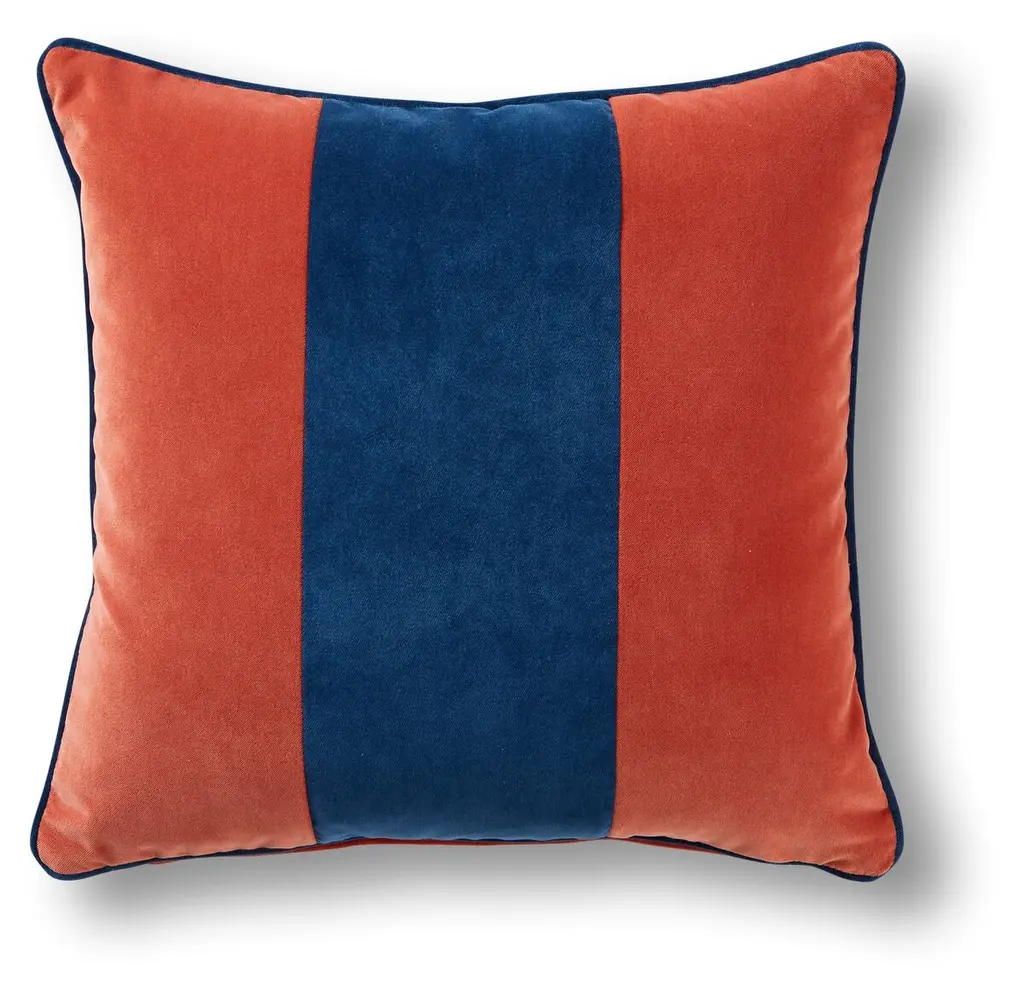 Amazonite Brick & Blue Striped Velvet Deluxe Handmade Decorative Pillow