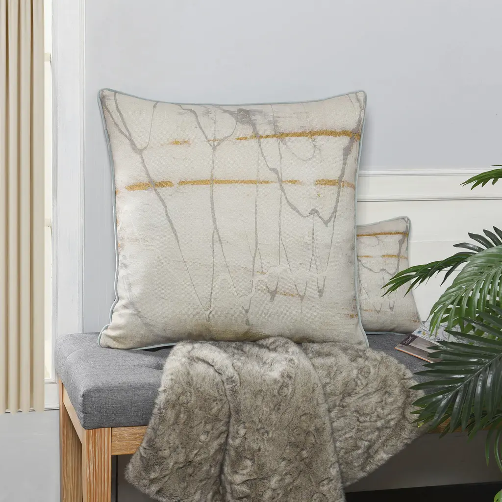 The Amos collection brings you a powerhouse pillow filled with duck feathers, wrapped in a precious poly-cotton blend. Printed on linen, this comfortable accessory meshes perfectly with a modern aesthetic. Whether you're bidding guests a warm welcome in the living room or adding some style to your home office, this pillow is the seamless choice.