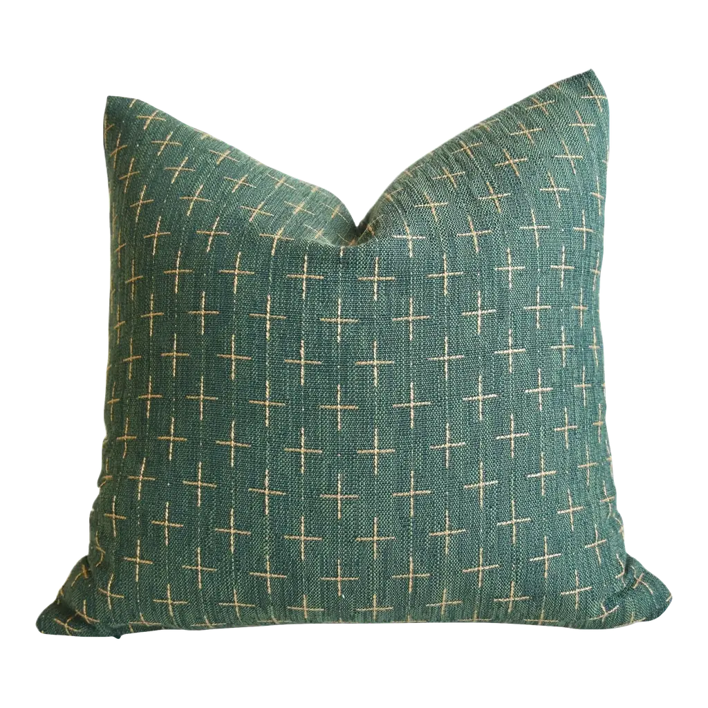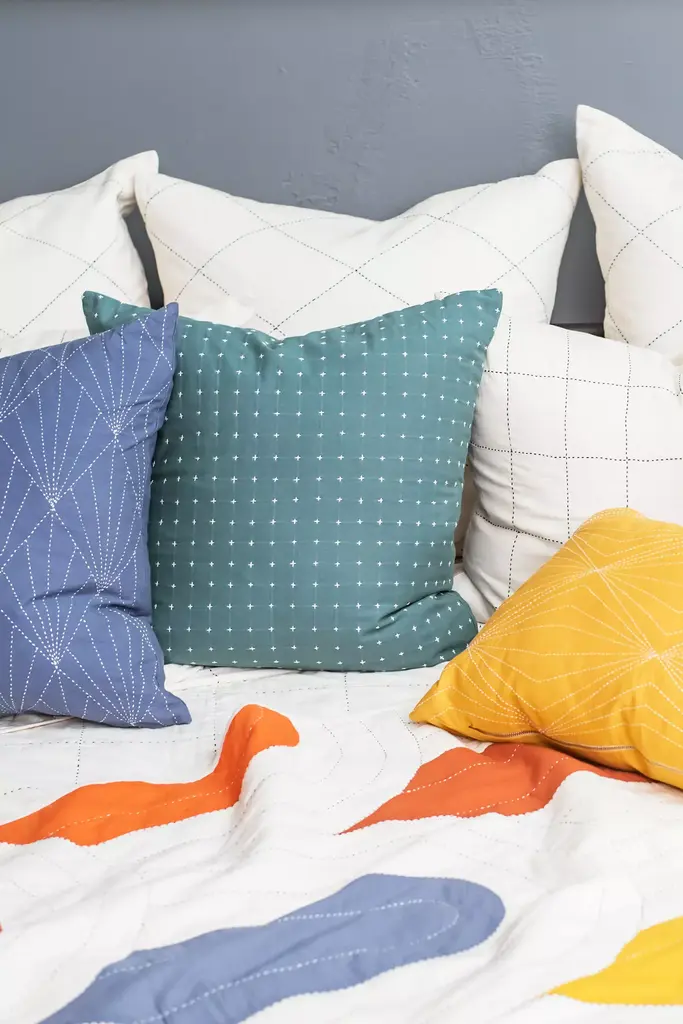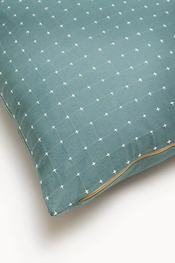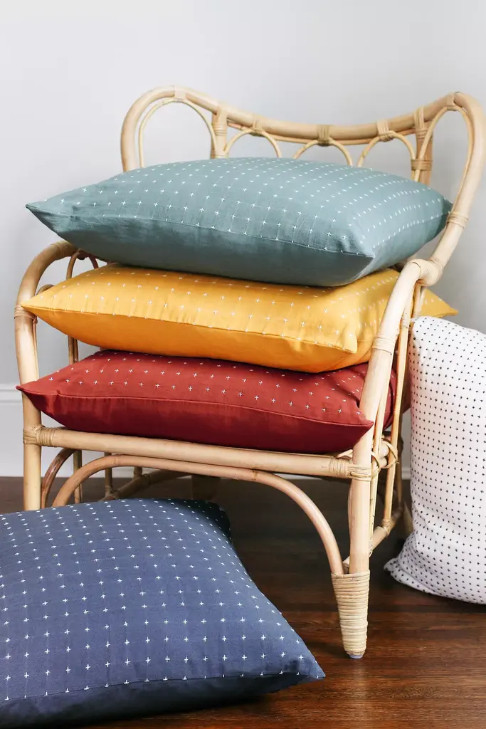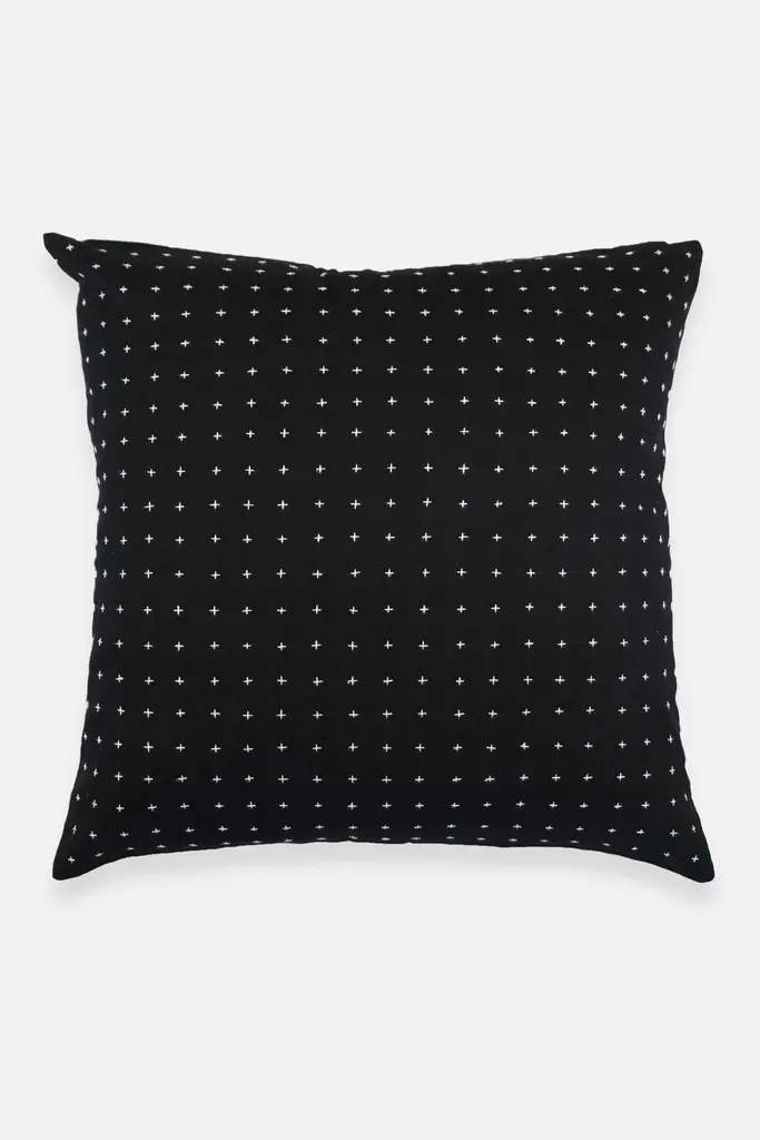 Ethically made using cotton canvas, this pillow features a hand-stitched cross-stitch design perfect for mixing and matching into any pillow arrangement.Anchal [on-chal] is an award-winning, social enterprise that uses design thinking to create innovative products and sustainable employment for exploited women worldwide. The contemporary geometric designs are defined by sophisticated patchwork and aggregated stitch patterns, revolutionizing traditional quilting techniques. Anchal's home goods and fashion accessories are hand-stitched by 130 artisans in Ajmer, India with layers of the softest cotton since 2010. Every purchase of an Anchal product has an immediate impact and provides an artisan with a full-time job, health care benefits, design training, and educational workshops.* Bottom zip closure* Embroidered front, solid back* Removable feather/down insert included* 100% cotton* Dry clean recommended* Imported#### *Dimensions** 22"L, 22"W