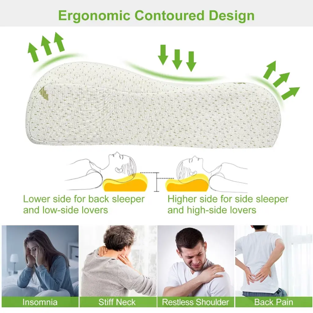 Angel Sar Bamboo Memory Foam Cervical Pillow, Contoured Orthopedic Neck Support Pillow With Wave Design, 2-height Sides For Back/side Sleepers