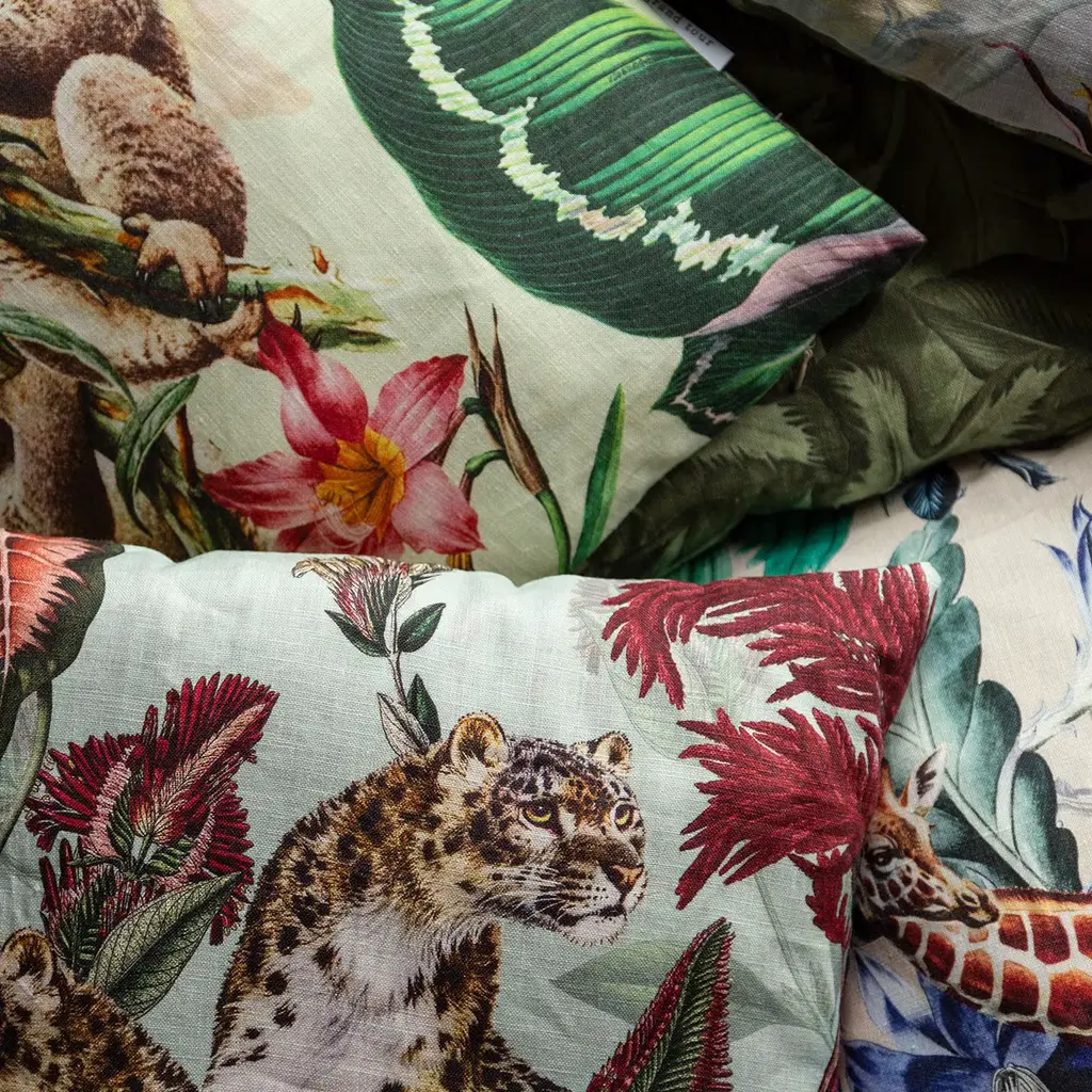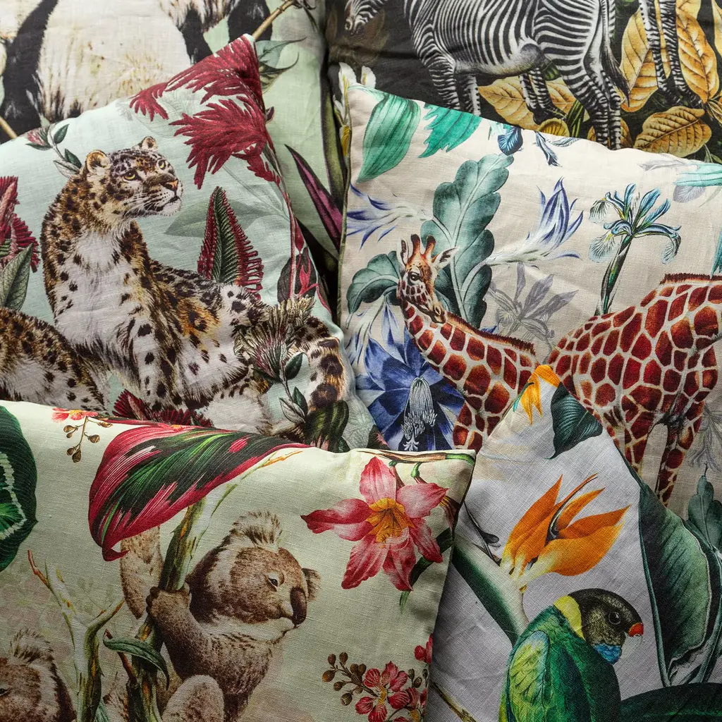 Animalia Linen Cushion With Cheetahs And Red Vegetation