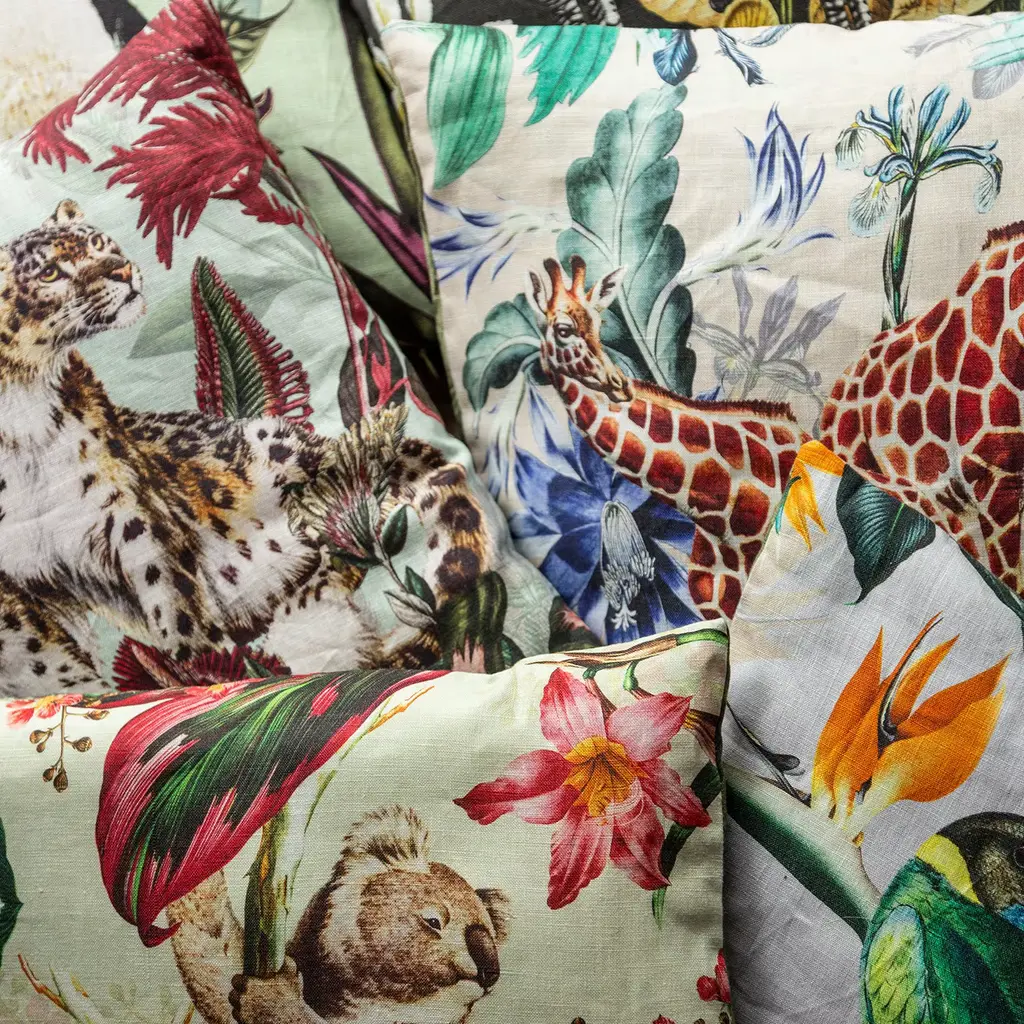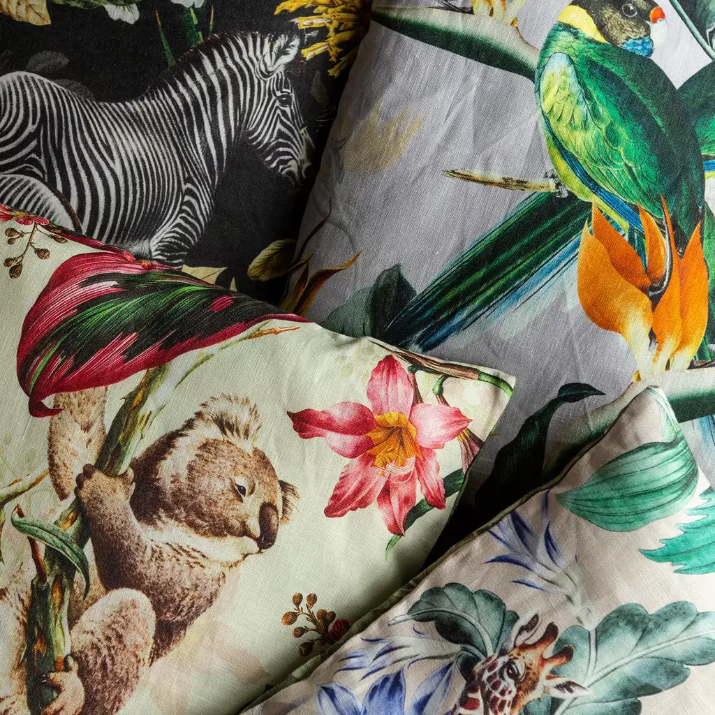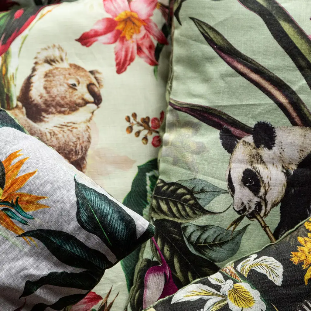 Animalia Linen Cushion With Koalas And Pink Flowers