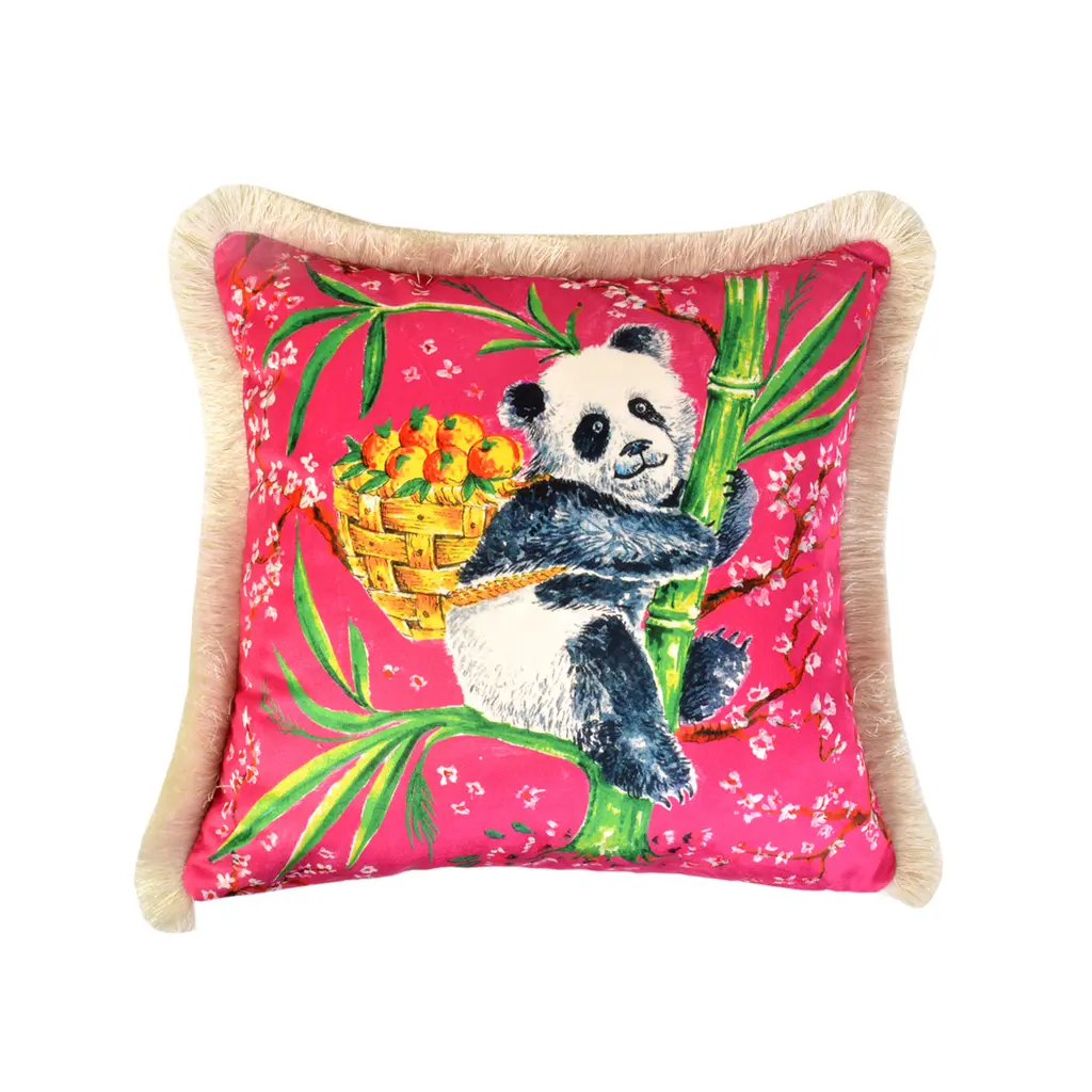 Animalia, Pandas, Contemporary Linen Printed Pillow By Vito Nesta