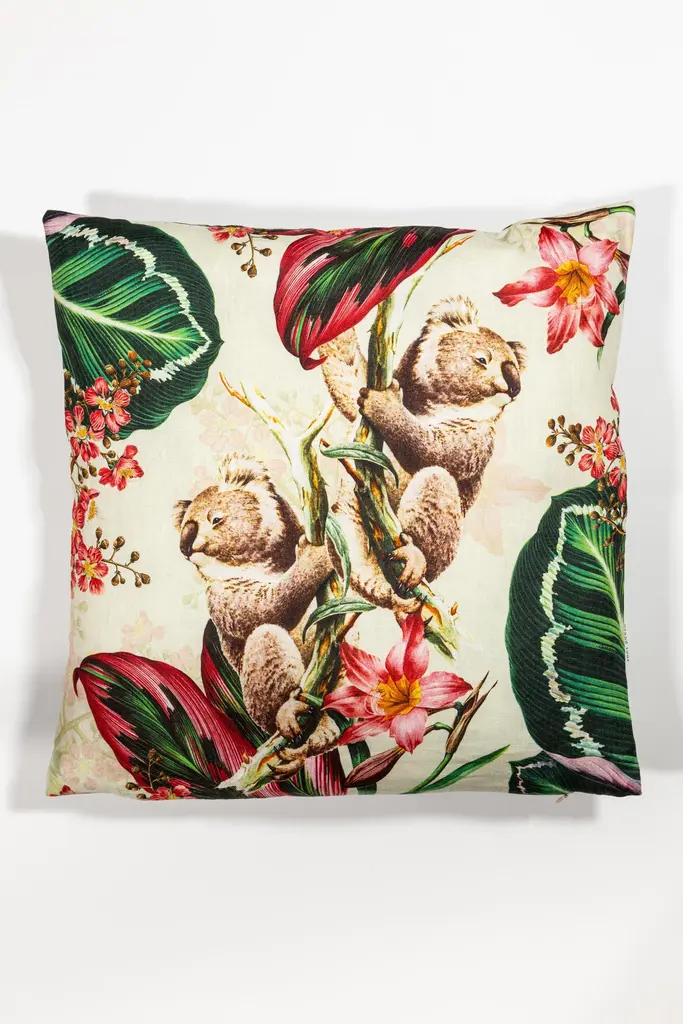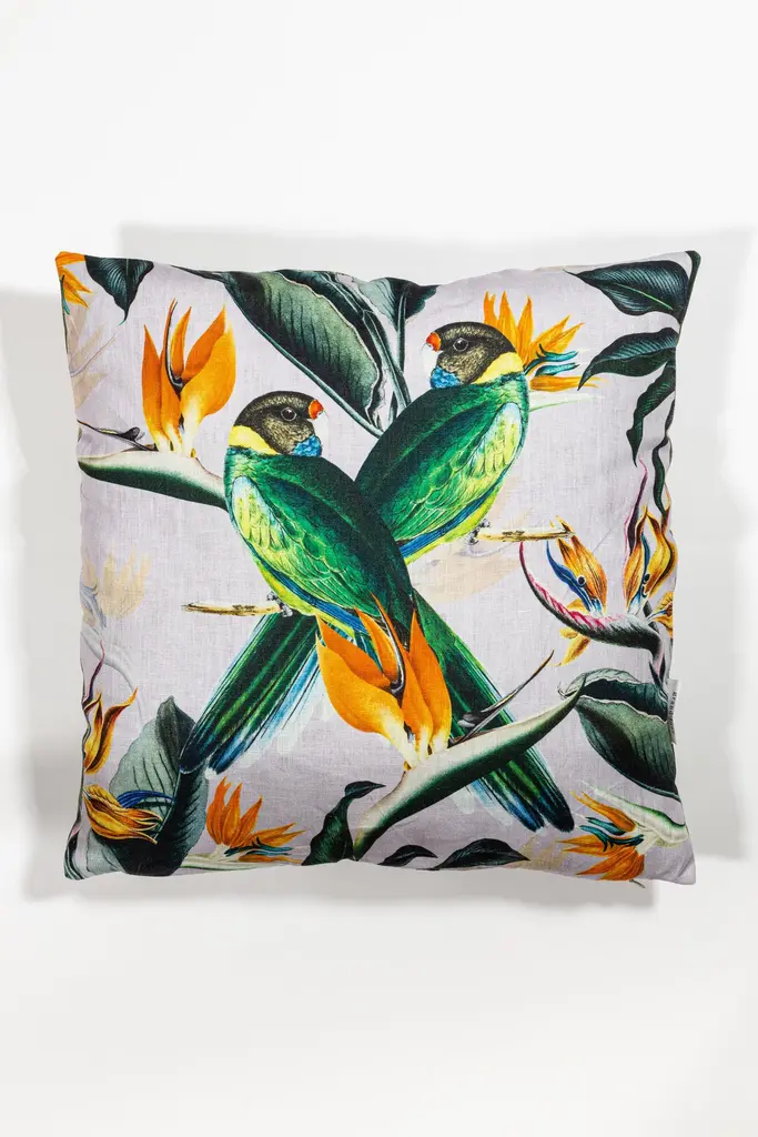 Animalia, Parrots, Contemporary Linen Printed Pillow By Vito Nesta