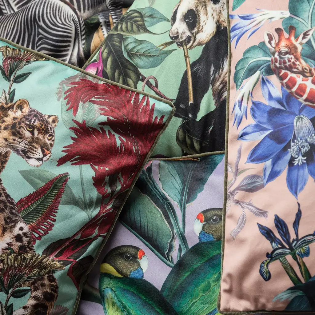 Measuring 50 x 50 cm, the Animalia Cushion is part of the Animalia range of designer home items. Featuring two inquisitive pandas roaming among flowers and foliage, the luscious tropical design will add zest and wonder to any living space.