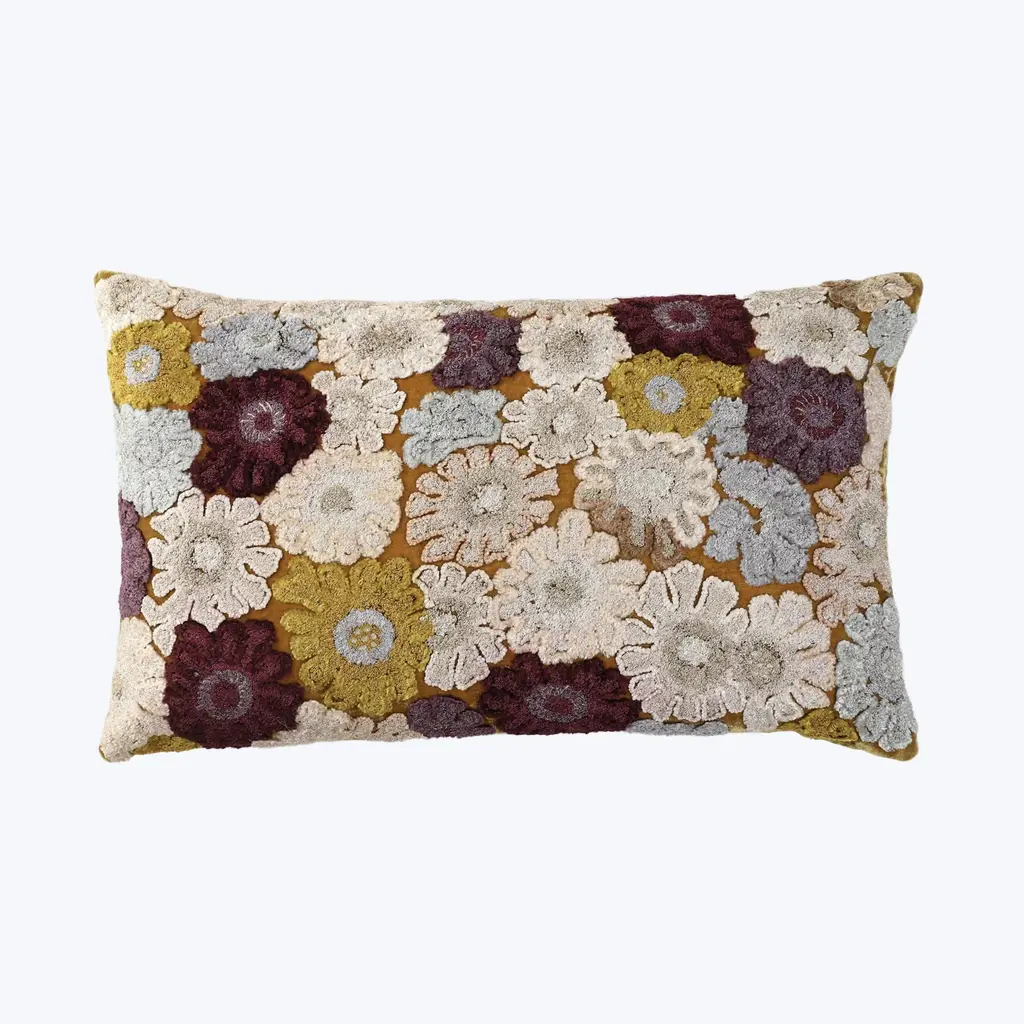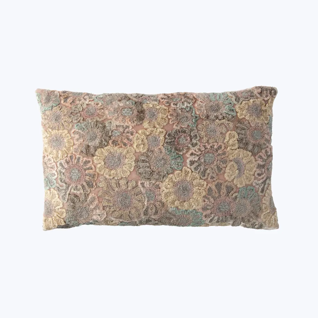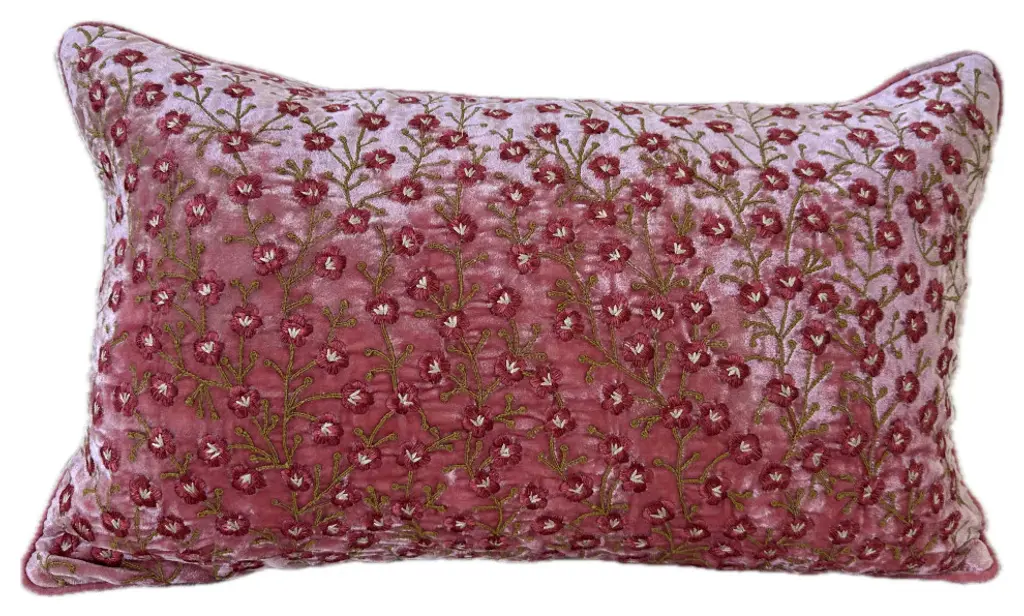 The Anouk Pillow is a beautiful decorative rectangular pillow from India in a floral pattern. Made of 100% Silk Velvet, the pillow has a soft and velvety texture with slightly raised flowers for a three-dimensional effect. Measuring 12 L x 20 W, this high-end pillow will add elegance to any space.