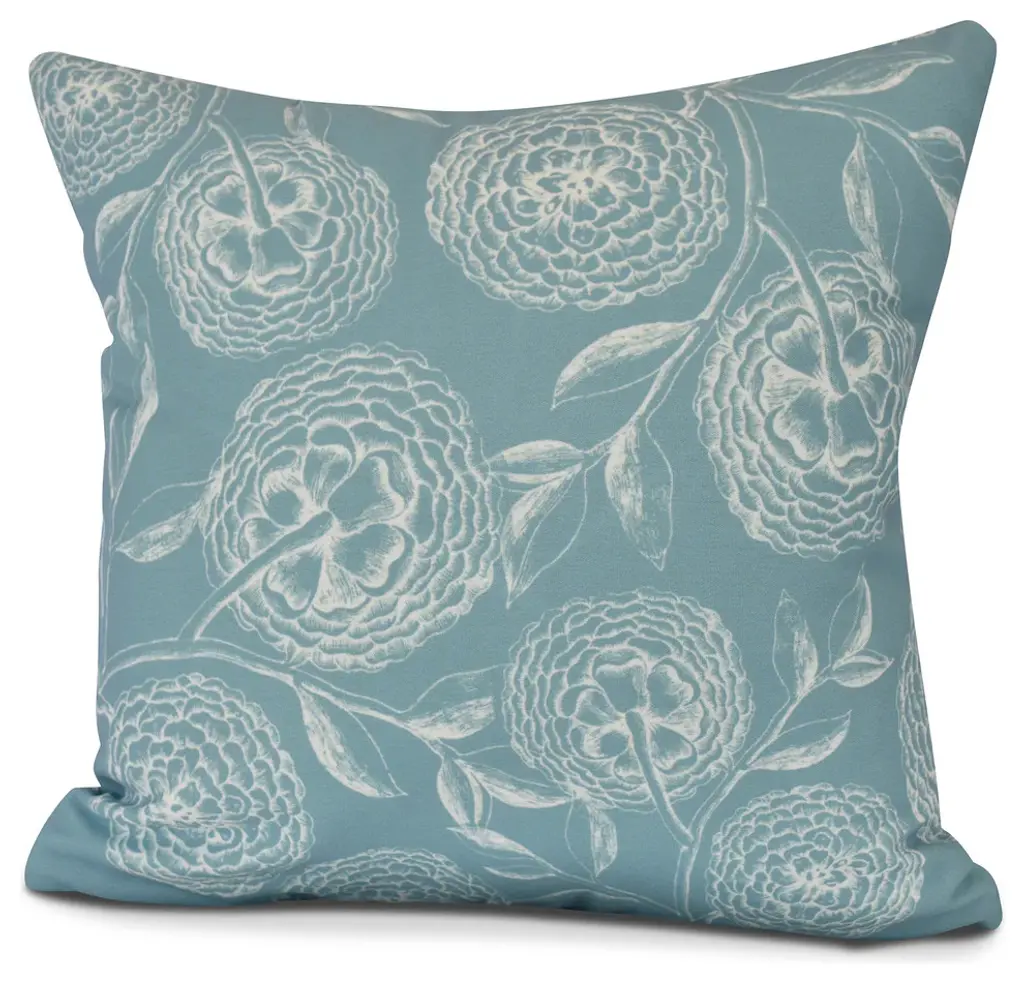 Antique Floral, Floral Print Outdoor Pillow,navy Blue,18 X 18 Inch