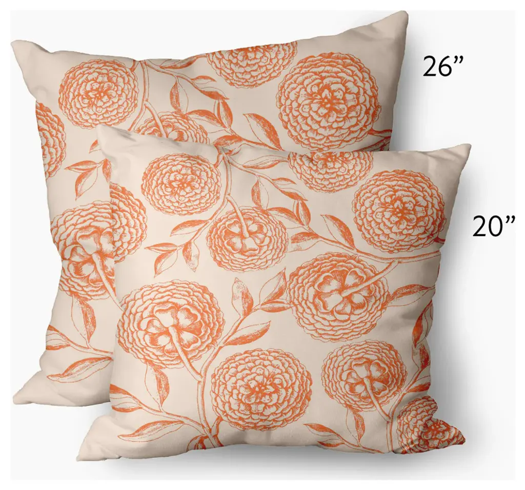 Antique Flowers Decorative Throw Pillow, Orange, 20"x20"