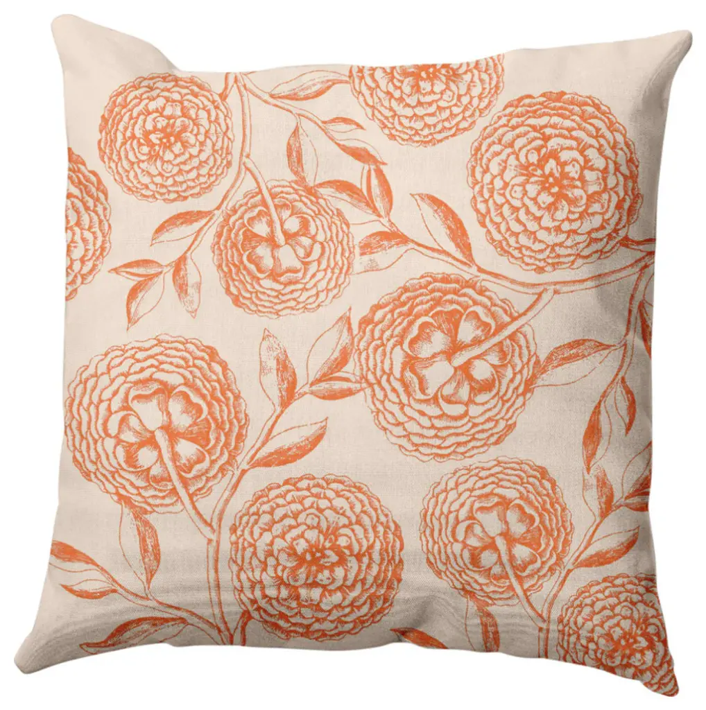 Antique Flowers, Floral Outdoor Pillow, Coral, 20"x20"