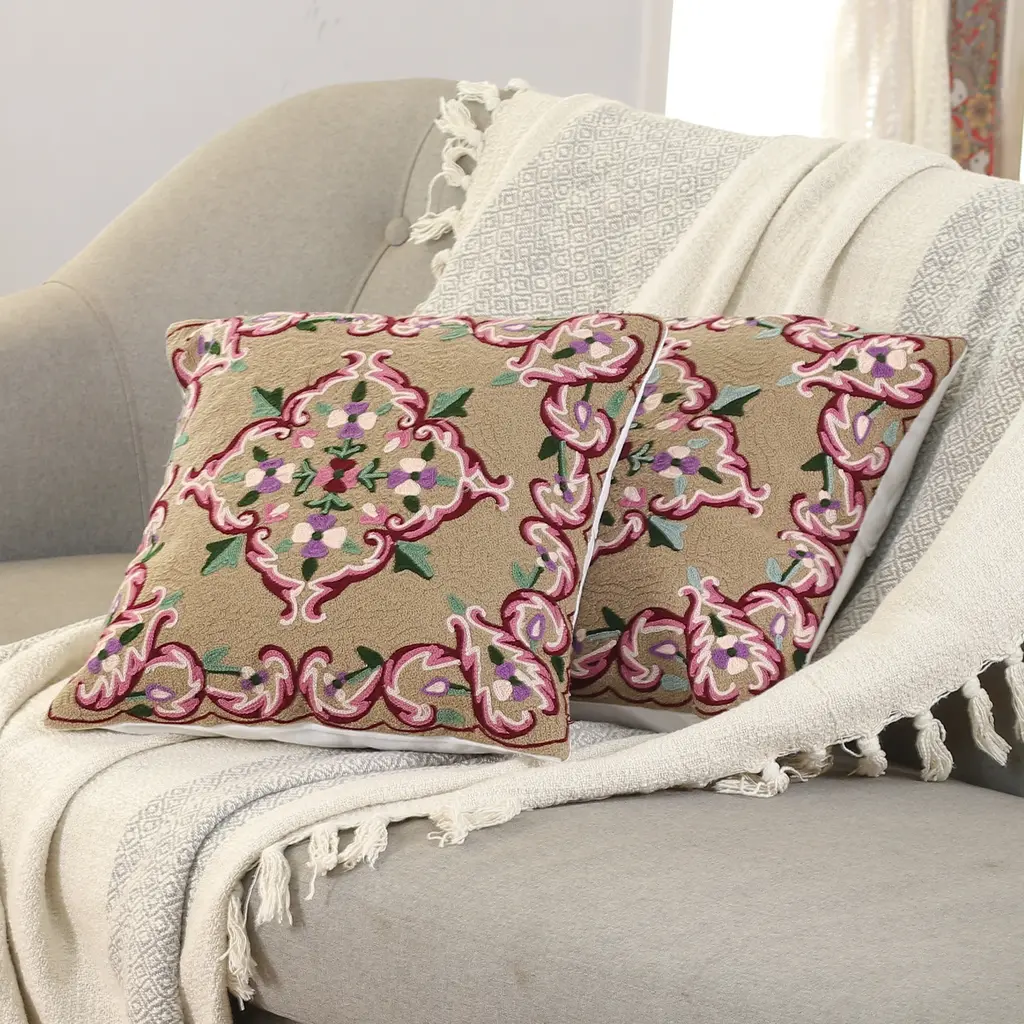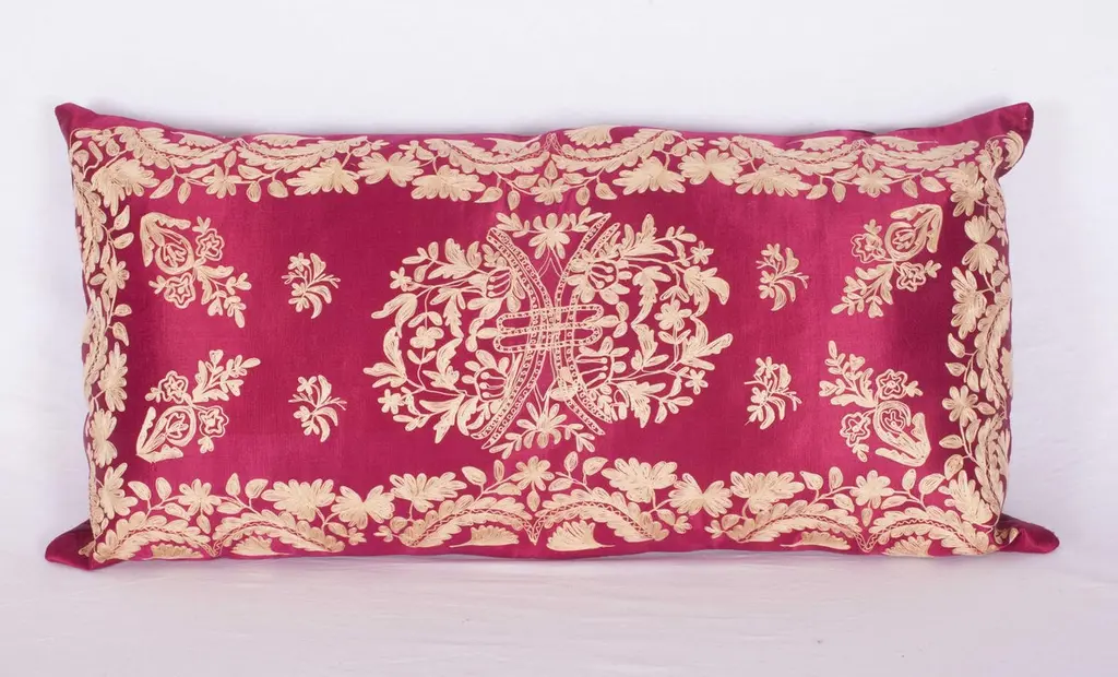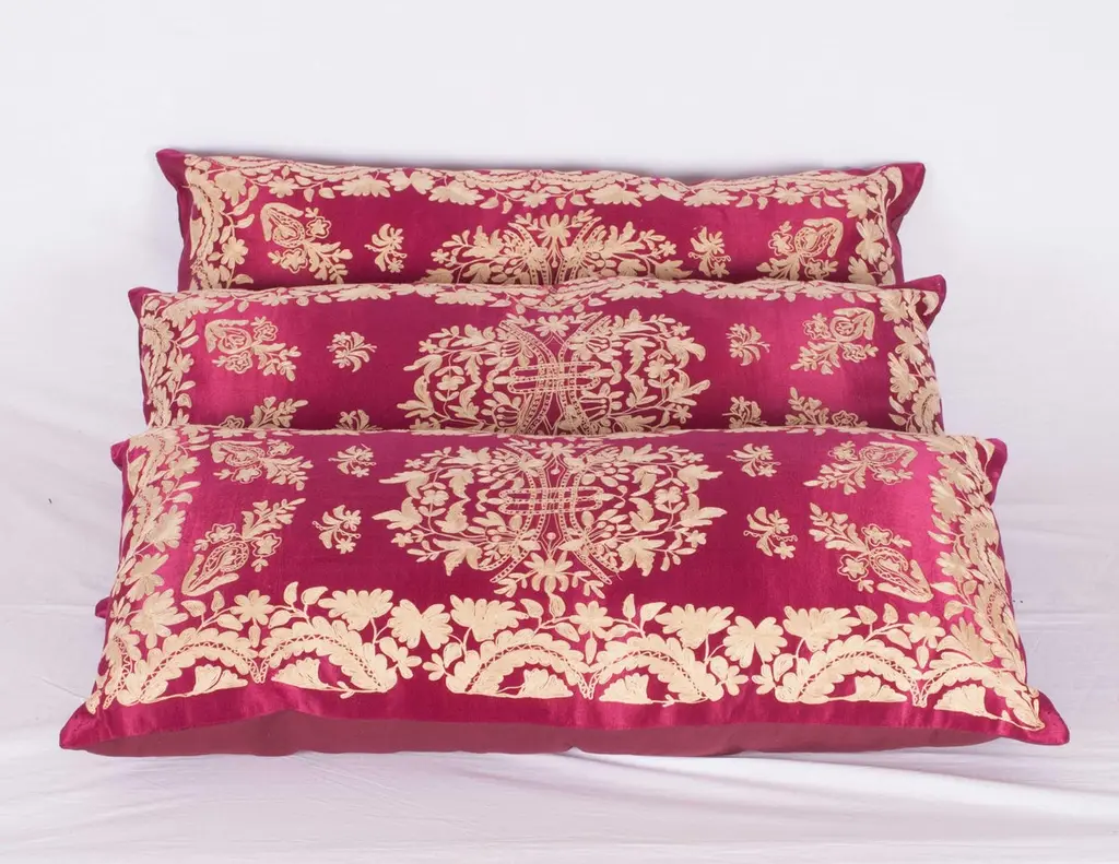 Late 19th-early 20th century pillow cases , embroidered in silk on a satin silk background. The backing has been replaced with a hand loomed silk and cotton fabric. Insert is not provided but it comes with a bag to accommodate insert material . Dry Clean or spot cleaning only. The item above is an antique so it is not in brand new condition.