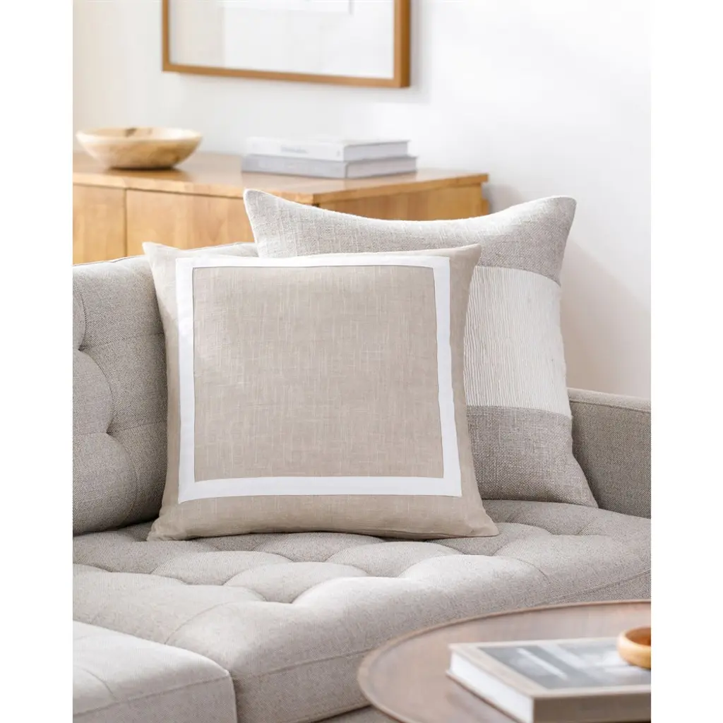 Antoine Coastal Beach Tan Cotton Border Throw Pillow - 18x18