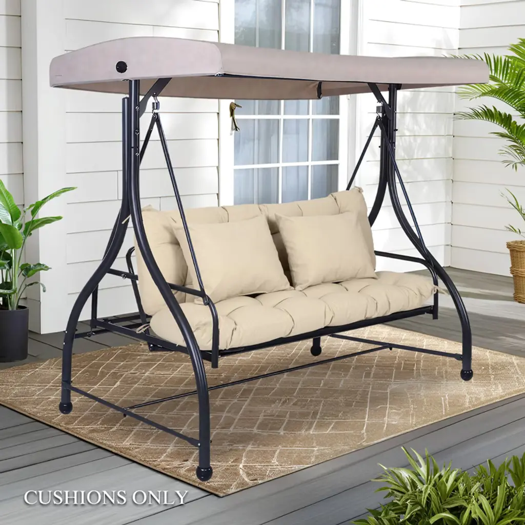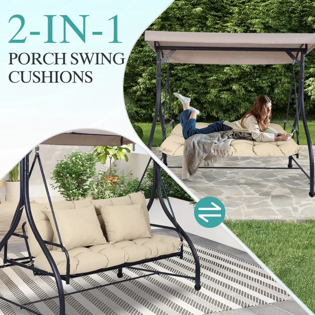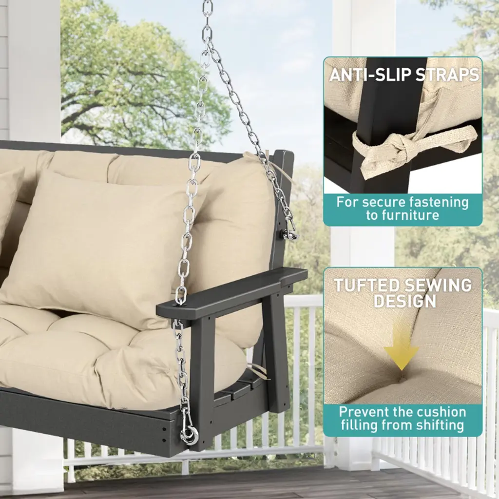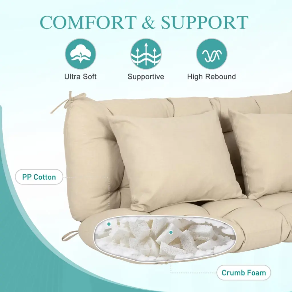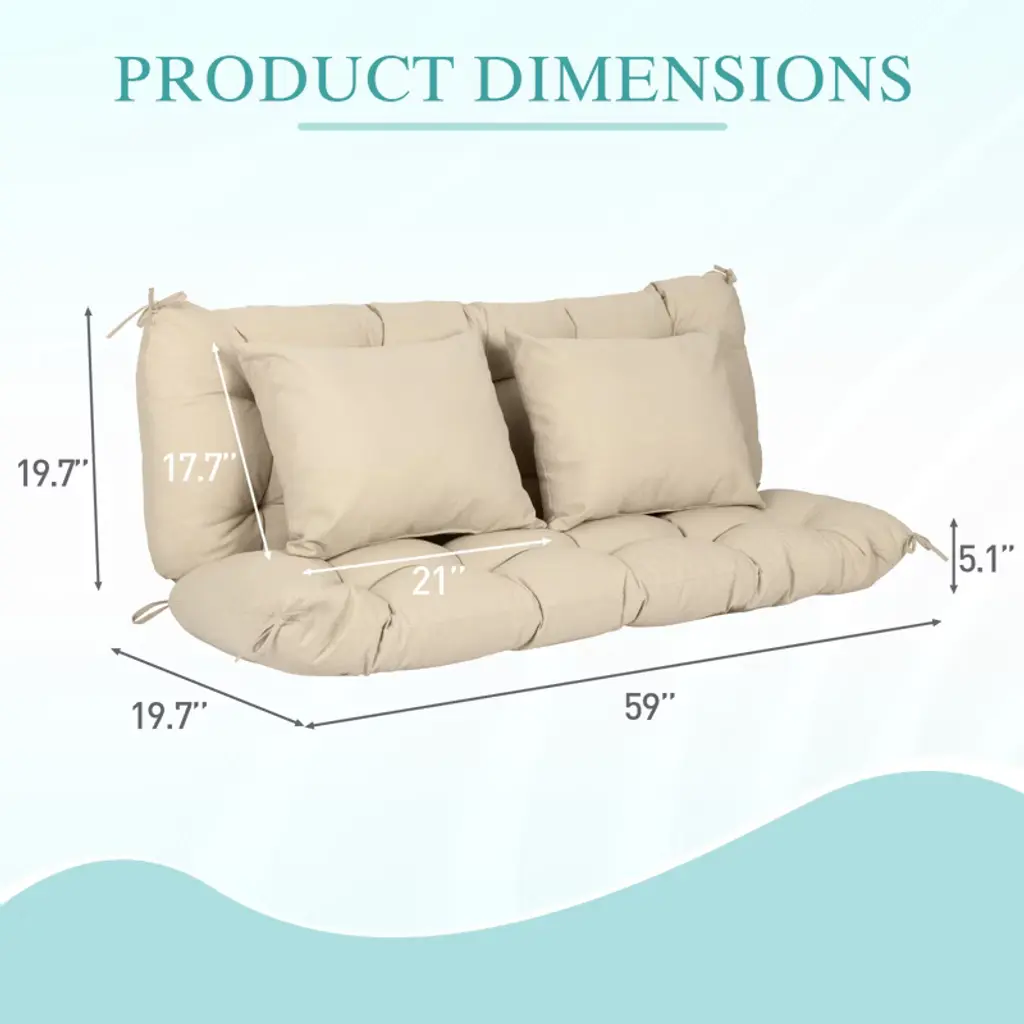 Aoodor 59" Tufted Porch Swing Cushions, Outdoor Swing Replacement Cushion 2-3 Seater With Backrest And 2 Pillows, Water And Fade Resistant