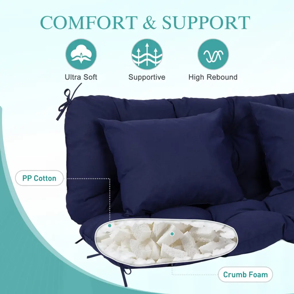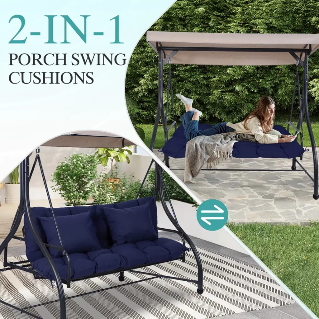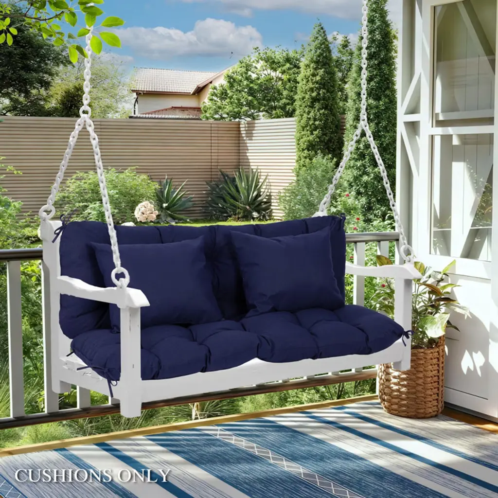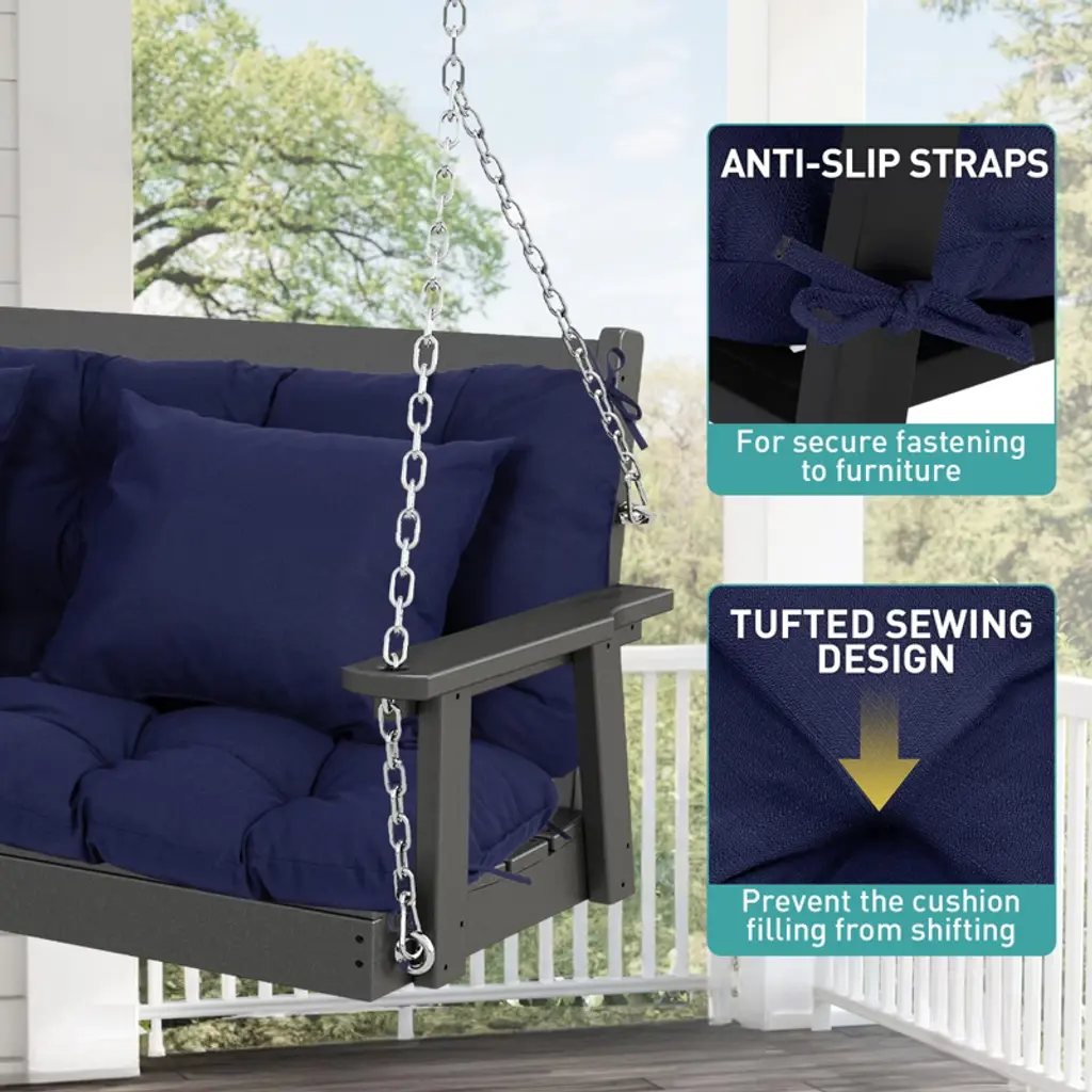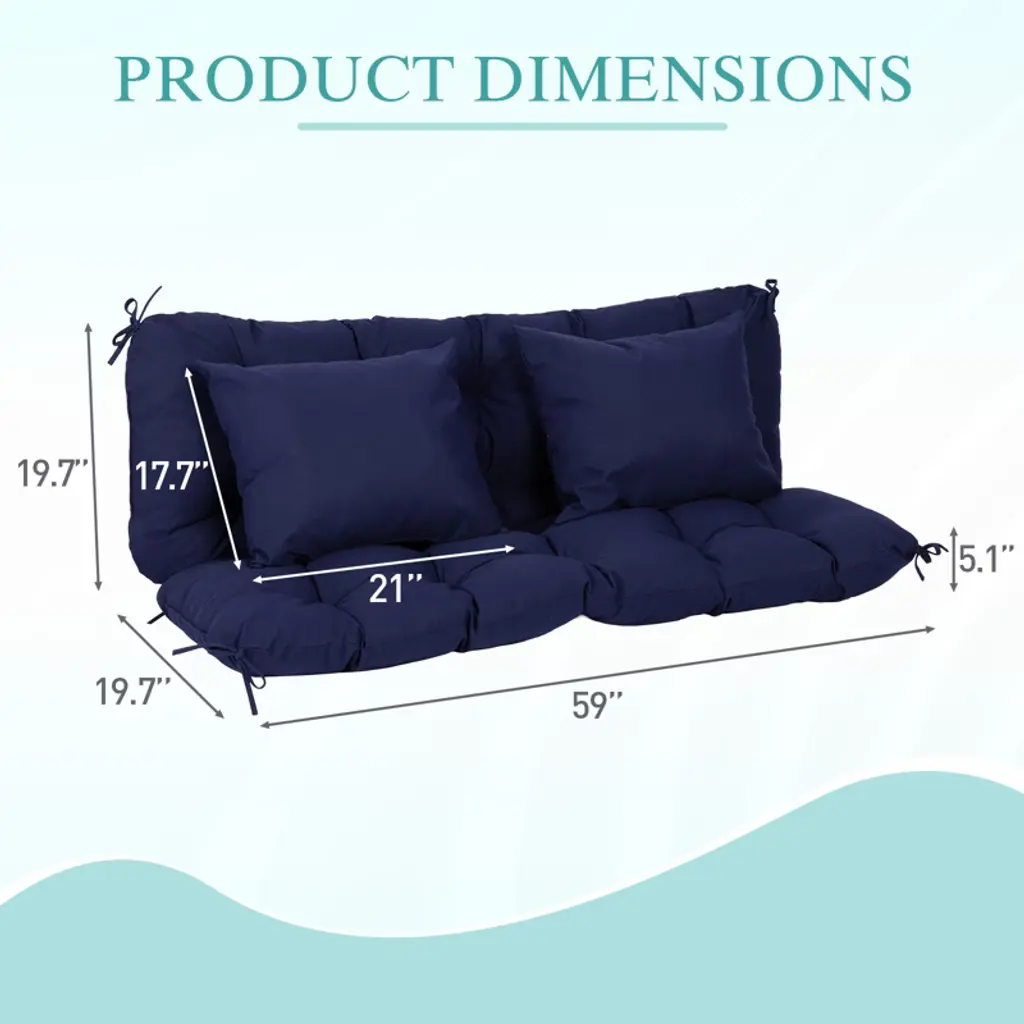 Aoodor 59" Tufted Porch Swing Cushions, Outdoor Swing Replacement Cushion 2-3 Seater With Backrest And 2 Pillows, Water And Fade Resistant