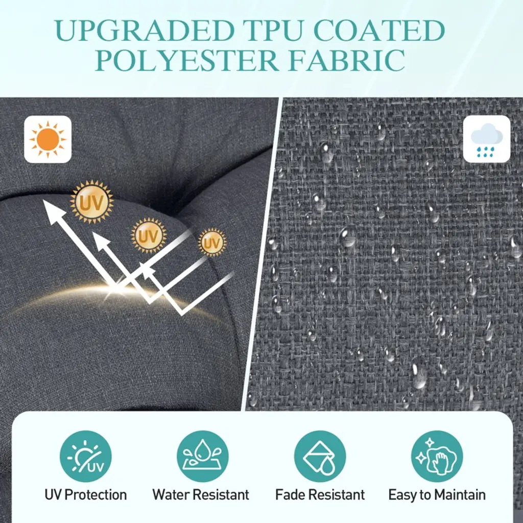 Enhance your outdoor leisure experience with the Aoodor outdoor swing cushion, designed specifically for 2- to 3-person porch swings or benches. This cushion features high-quality polyester fabric with a TPU coating, offering excellent colorfastness, water resistance, and easy maintenance. Its 5.1-inch-thick filling provides a soft yet supportive seating experience. Available in five stylish colors, this cushion set perfectly complements various outdoor décor styles, making it an ideal choice for backyard, garden, or patio furniture.
