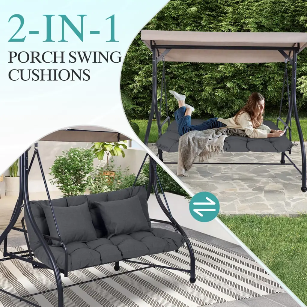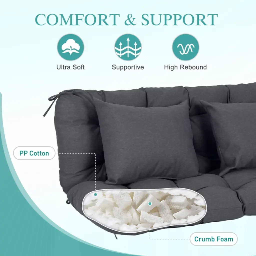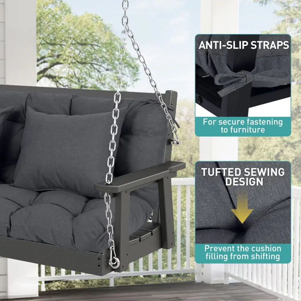 Aoodor 59" Tufted Porch Swing Cushions, Outdoor Swing Replacement Cushion 2-3 Seater With Backrest And 2 Pillows, Water And Fade Resistant