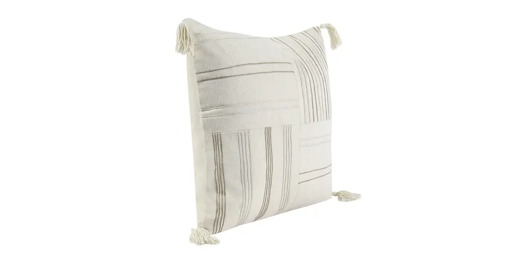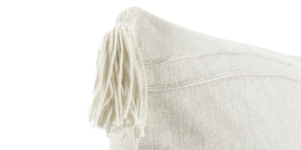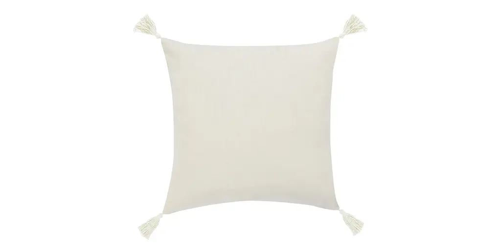 The Apana Pillow shines with a calming hue, lightly accentuated by jute embroidery and hand-applied linen applique. Featuring luxe tassels and a clean, crisp knife-edge finish, this pillow complements neighboring neutrals. Available as cover only or with a luxury down insert.