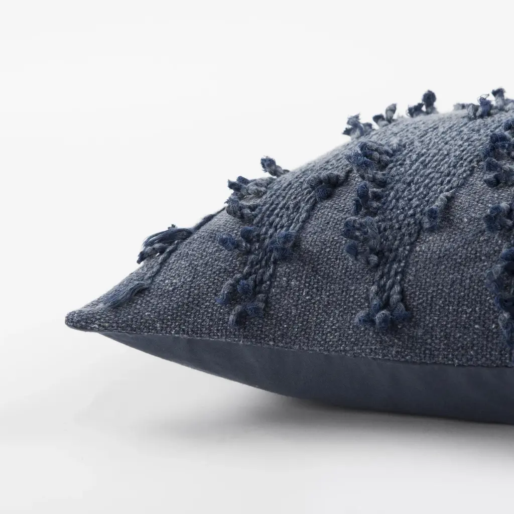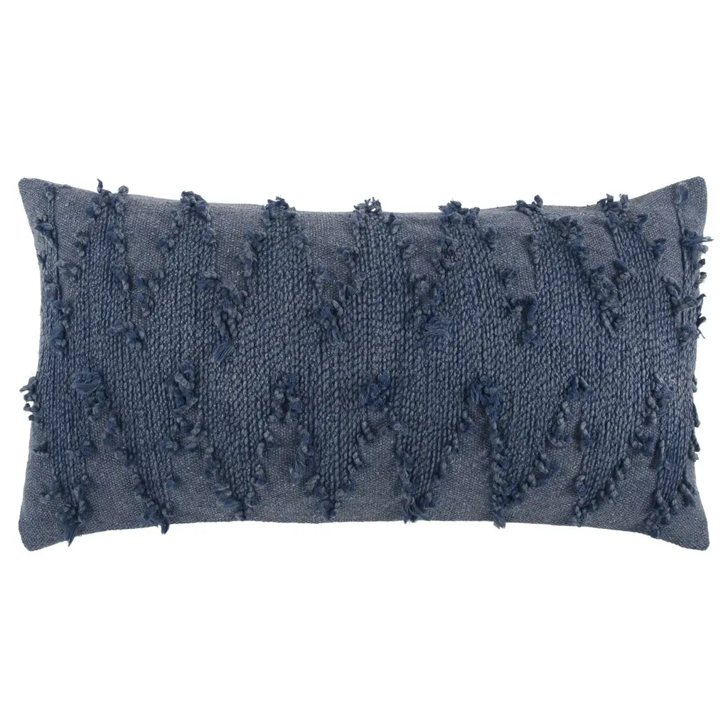 Reminiscent of your favorite pair of blue jeans, this Indigo Blues Rectangular Chevron Throw Pillow will add a nostalgic and comfortable feel to your home or office décor. The outer edge of the chevron pattern has a frayed look to add a visually stimulating texture to the pillow top. The back of the pillow is made of coordinating, solid cotton and is finished with a knife edge.