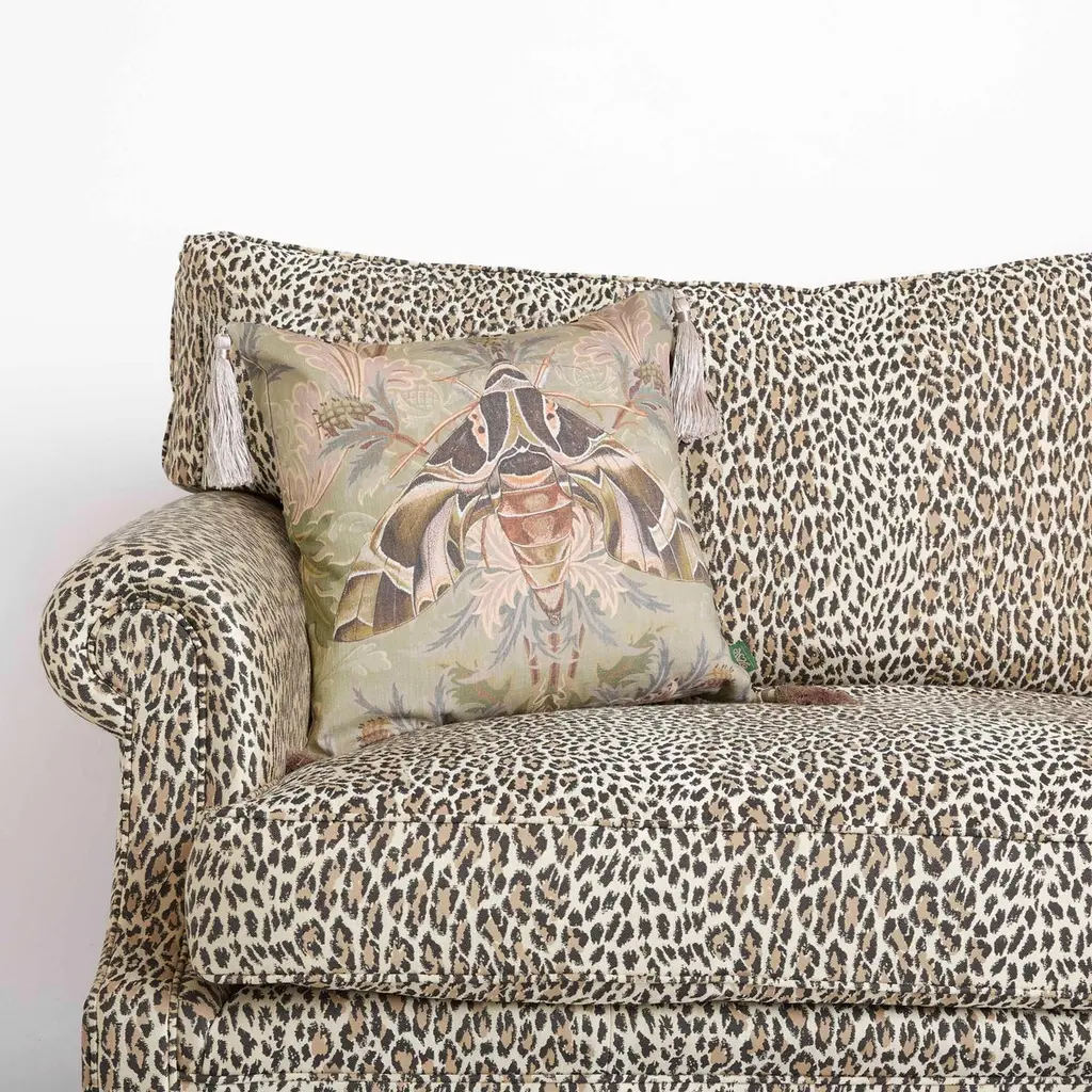 Like a moth to a flame, you can’t help but be drawn to this creature comfort. Our magnificent moth rests upon a bed of sacred sea holly courtesy of our AQUIFOLIA damask print, made from 65% organic cotton, 25% recycled cotton and 10% linen. Plumped with responsibly sourced wool and finished with tassels. Each cushion sold enables House of Hackney to purchase and protect 35 square metres of forest thanks to our partnership with the World Land Trust, the international conservation charity that safeguards our most vital natural ecosystems and threatened habitats, acre by acre.House of Hackney is evolving from being a sustainable business to a regenerative one; where instead of just ‘sustaining’ life we actively heal and restore our business touchpoints and communities.