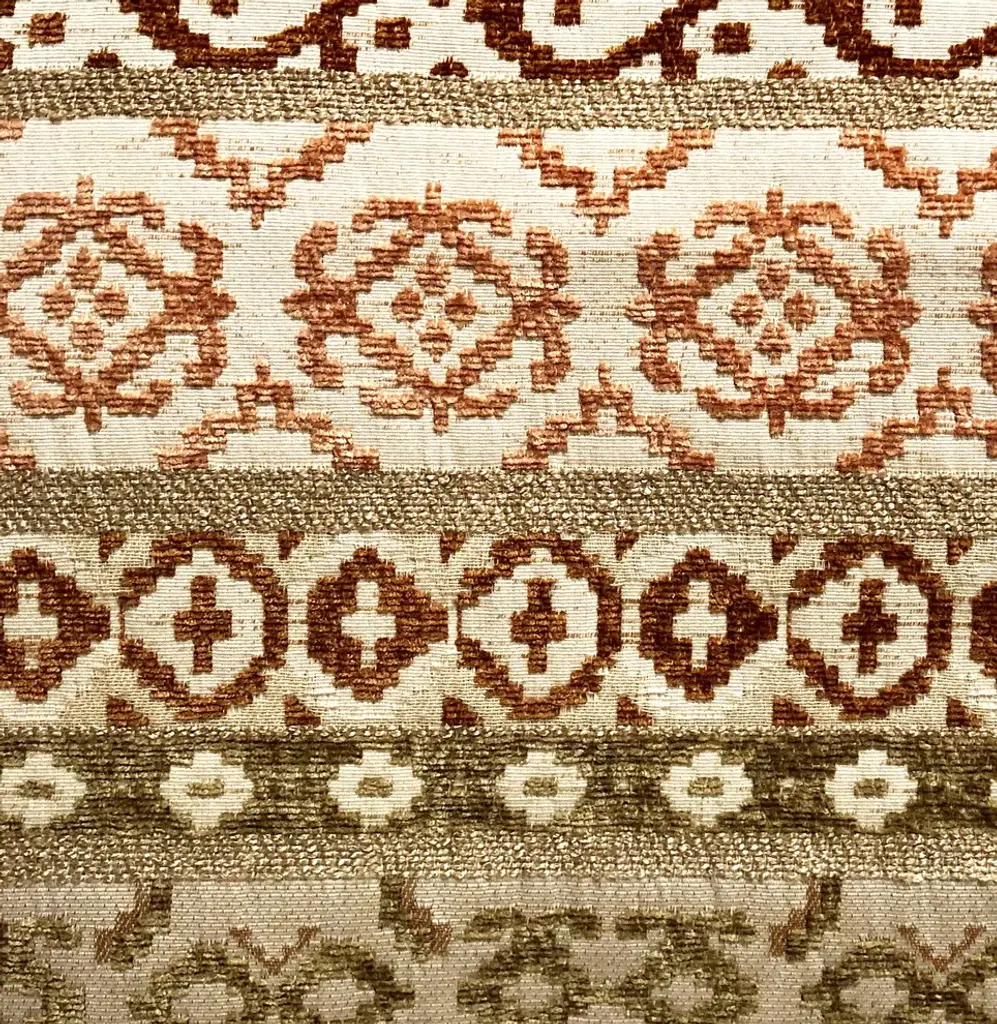 Accessorize your space with this designer arabesque shades of brown luxury throw pillow. The fabric of this trendy pillow is a blend of Rayon, Polyester, Cotton, and Nyl.• Colors: Tan, Red, Green• Fabric Origin: United States. Pillows are Handmade in USA• Double Sided pillow• Invisible zipper enclosure for a tailored look• All seams are over-locked and stitched for a professional finish• Pattern placement may vary slightly• Pillow measurements are seam to seam from the inside• Pillows include • Made in USA• Hypoallergenic Down Alternative Polyfill Insert• Dry Clean recommended• Fabric Content: 56% Rayon 26% Polyester 17% Cotton 1% Nyl