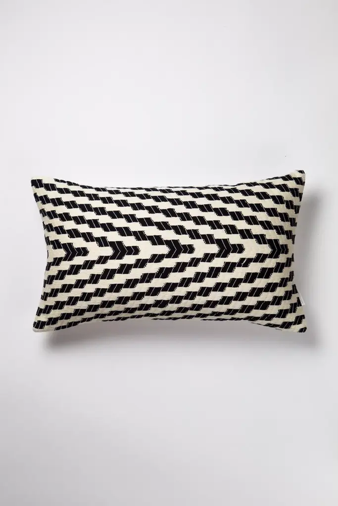 The perfect graphic pattern youve been looking for. This pillow represents a traditional textile from Almolonga, Guatemala. It was woven by artisans using a back-strap loom, a time honored method of weaving, and made in partnership with a non-profit organization on Lake Atitlan, Guatemala. Archive New York is a line of handwoven, artisan made home decor products, founded in 2014 in Brooklyn, NY. The founder, Amira Marion, grew up in a home filled with Guatemalan textiles gathered by her parents in the 1970s. Her own designs emphasize a deep connection with Central American artisans, a commitment to Fair Trade practices, and the honoring of Maya culture, heritage and technique.* 100% handwoven cotton* Dry clean only* Imported* Bottom zip* Faux down poly insert included#### *Dimensions** 12" x 20"