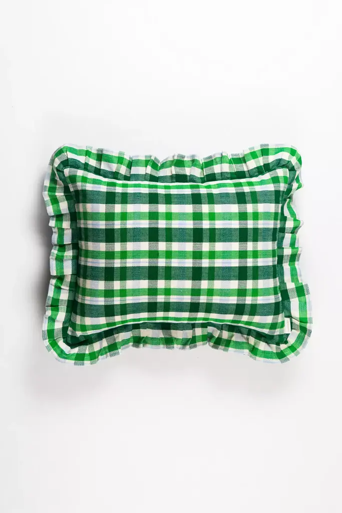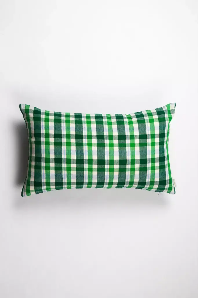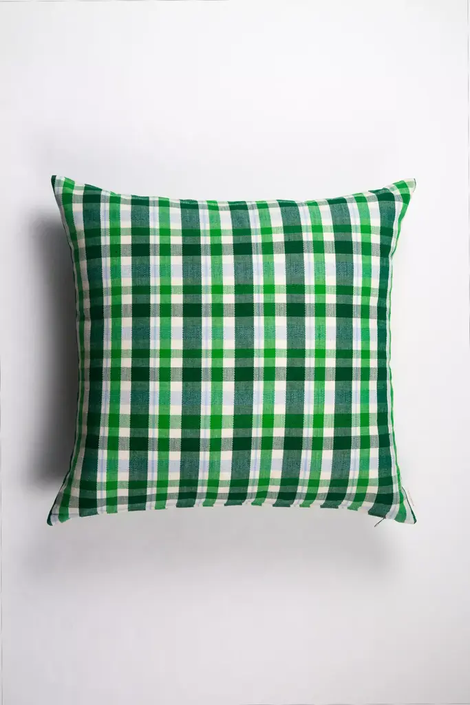 The Josefina plaid pillow is the perfect choice to add vibrant color and texture to any sofa, bedroom, or accent chair. Stripes of evergreen, grass green and baby blue accent are woven together to create this bold piece. Each pillow is ethically handwoven by artisans in Xela, Guatemala.Archive New York is a line of handwoven, artisan made home decor products, founded in 2014 in Brooklyn, NY. The founder, Amira Marion, grew up in a home filled with Guatemalan textiles gathered by her parents in the 1970s. Her own designs emphasize a deep connection with Central American artisans, a commitment to Fair Trade practices, and the honoring of Maya culture, heritage and technique.* Bottom zip* Handwoven cotton* Faux down insert included* Dry clean only* Imported#### *Dimensions** 12"x20" Rectangle* 15"x20" Ruffle Pillow (measurement includes ruffle)* 20"x20" Square