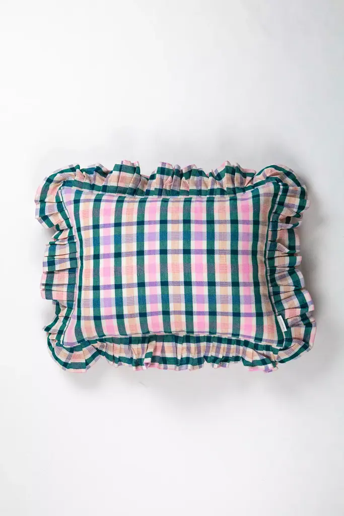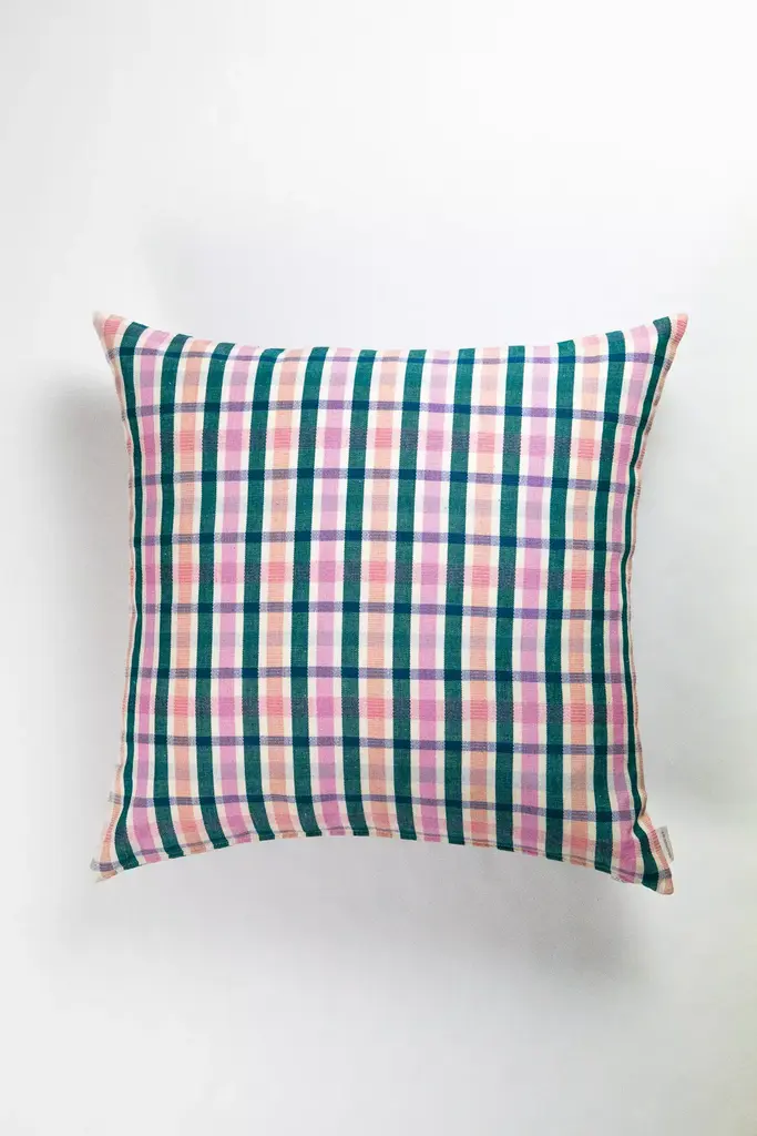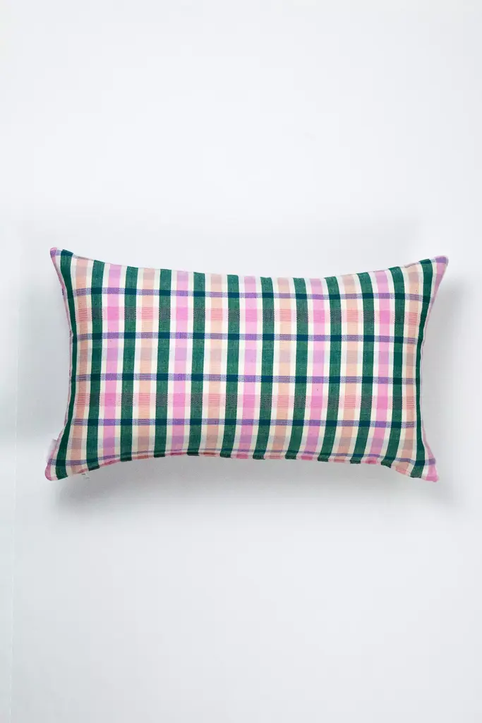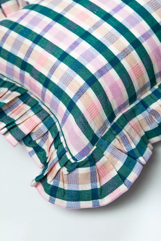 The Lolaplaidpillowis the perfect accent to add soft color and texture to any sofa, bedroom or accent chair. Stripes of light pink, peach, emerald and royal blueare woven together to create this brilliantly colorful piece.Ethically handwoven by artisans in Xela, Guatemala.Archive New York is a line of handwoven, artisan made home decor products, founded in 2014 in Brooklyn, NY. The founder, Amira Marion, grew up in a home filled with Guatemalan textiles gathered by her parents in the 1970s. Her own designs emphasize a deep connection with Central American artisans, a commitment to Fair Trade practices, and the honoring of Maya culture, heritage and technique.* Bottom zip* Handwoven cotton* Feather/down insert included* Dry clean only* Imported#### *Dimensions** 12"x20" Rectangle* 15"x20" Ruffle Pillow (measurement includes ruffle)* 20"x20" Square