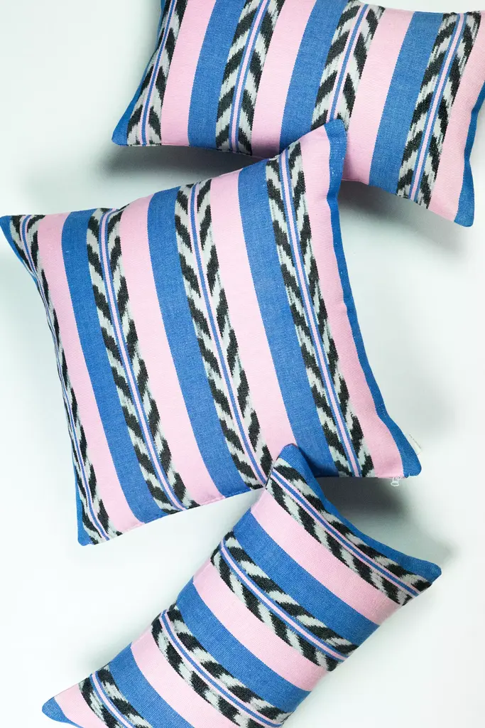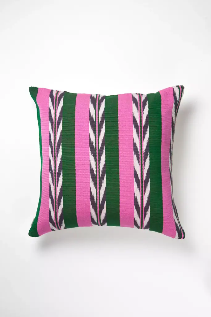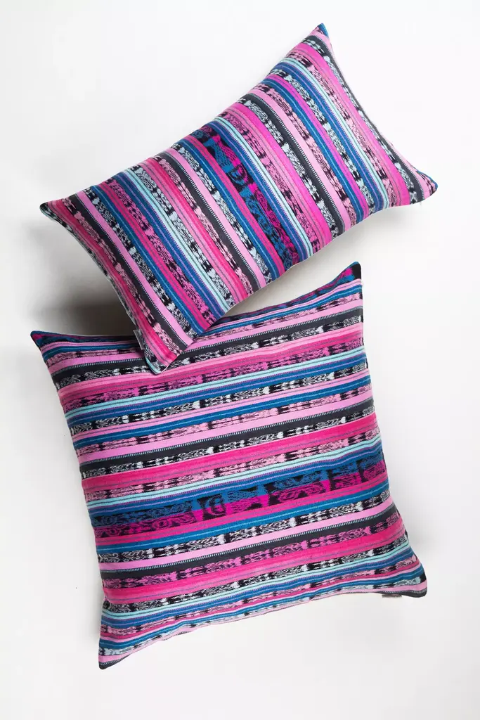 The perfect colorful patterned pillow youve been searching for. This textile represents a traditional textile from Totonicapan, Guatemala. It was woven by artisans using a foot loom, a time honored method of weaving, and made in partnership with a weavers in Totonicapan, Guatemala. Archive New York is a line of handwoven, artisan made home decor products, founded in 2014 in Brooklyn, NY. The founder, Amira Marion, grew up in a home filled with Guatemalan textiles gathered by her parents in the 1970s. Her own designs emphasize a deep connection with Central American artisans, a commitment to Fair Trade practices, and the honoring of Maya culture, heritage and technique.* 100% handwoven cotton* Dry clean only* Imported* Bottom zip* Faux down poly insert included#### *Dimensions** 20" x 20"