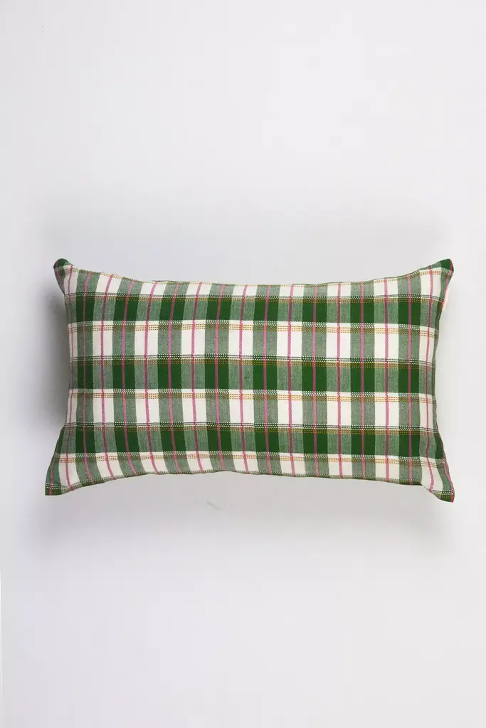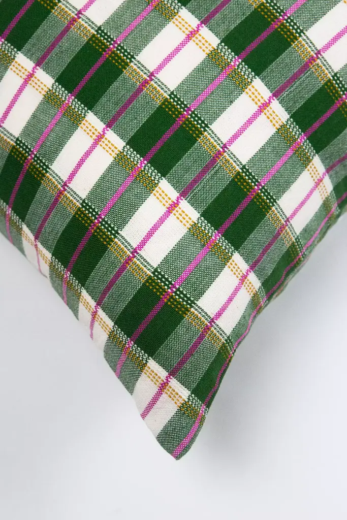 The San Andres Pillow is the perfect festive accent youve been searching for. Available in a classic green plaid as well as a vibrant pink color way. These throw pillow are ethically handwoven by artisans in Chiapas, Mexico on traditional footlooms. Archive New York is a line of handwoven, artisan made home decor products, founded in 2014 in Brooklyn, NY. The founder, Amira Marion, grew up in a home filled with Guatemalan textiles gathered by her parents in the 1970s. Her own designs emphasize a deep connection with Central American artisans, a commitment to Fair Trade practices, and the honoring of Maya culture, heritage and technique.* Bottom zip* Handwoven cotton* Faux down poly insert included* Dry clean only* Imported#### *Dimensions** 12"x20" Rectangle* 20"x20" Square