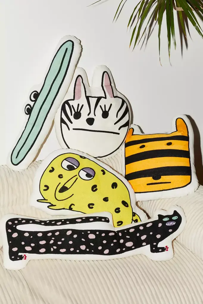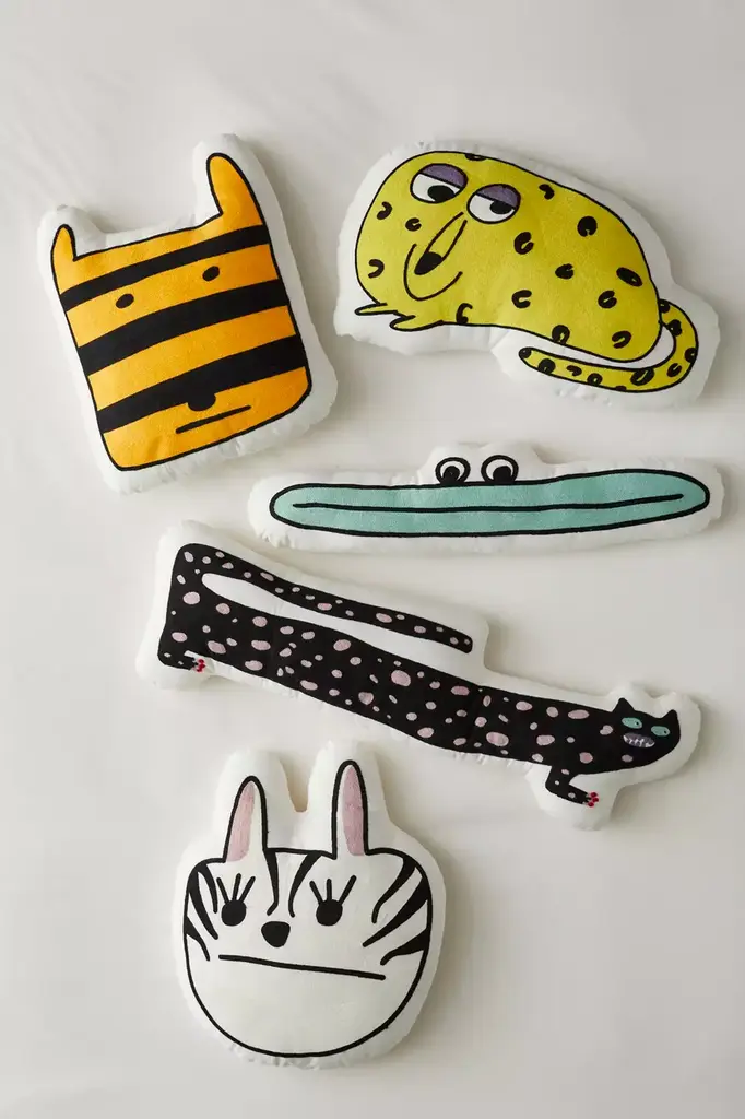 Add a playful finishing touch to your bed or sofa with this throw pillow from Areaware featuring abstract animal shapes topped with colorful embroidered detailing.