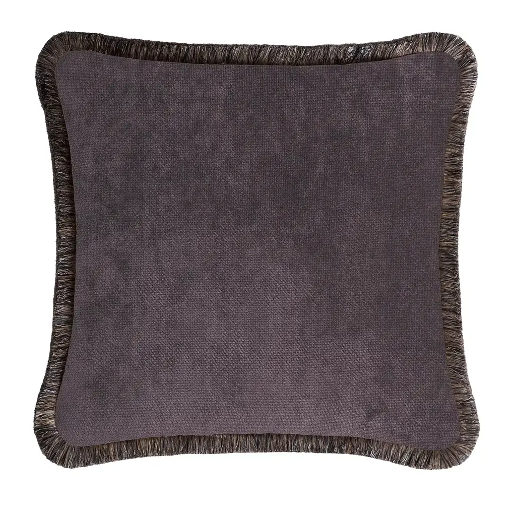 This elegant cushion cover was carefully hand-sewn with soft, anthracite velvet and contoured by prestigious multicolor cotton fringes. A sophisticated addition to a classic or contemporary sofa alike, it can be paired with a twin for a coordinated statement or with cushions in different designs for an eclectic set and lavish look. Handmade and realized in Italy with high quality and performing fabric - cloudy velvet - that can be easily washed at 40°, maintaining its style and quality.