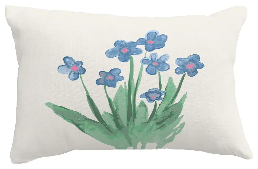 Artichoke Floral Print Throw Pillow With Linen Texture, Green, 14"x20"