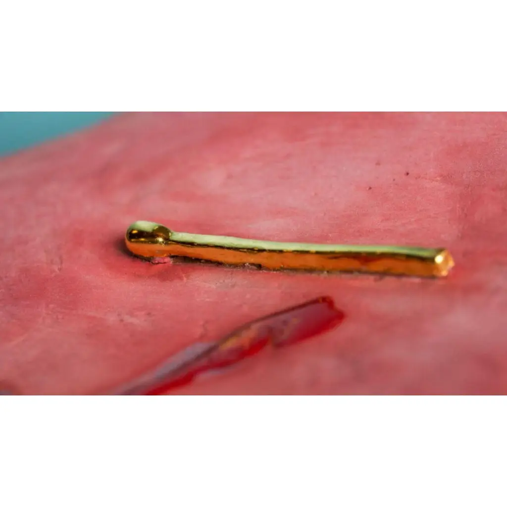 Artifacts of Disharmony red pillow Sculpture by Tero KuitunenMaterial: Handbuild ceramic, gold plating.Dimensions: D39 x W 39 x H29cmUnique piece, part of the museum exhibition.Designer Tero Kuitunen, b. 1986, is inspired by the interface of design and art, the unprejudiced apposition of things, floating sceneries, and the meaning of humor and touch in design. Alongside product design, Tero is known for concept and space planning as well as memorable projects of contemporary art and design. He has graduated as a designer from the Applied Arts MA program at the Aalto University School of Art, Design and Architecture. Tero works as a product, concept and interior designer in projects for clients such as Supercell, Absolut Vodka, Hakola and many more. Currently Tero is working as a freelance designer with a vast experience in the design and art field. He has participated in international exhibitions and fairs in e.g. Beirut, Stockholm, Japan and Italy. 2019-2020 he curated and created the concept for Wild at Heart exhibition that toured to Vienna, Budapest, Stockholm, Tokyo and Helsinki. In 2021 Tero was invited to create together with Karoliina Hellberg and Raimo Saarinen a new exhibition at the prominent Amos Rex Museum. Tero has received a one-year working grant from the Finnish Cultural Foundation in 2017 and projects grands from Arts Promotion Centre Finland and City of Kotka.Throughout his work, Tero wants to find something that moves and touches people. Materials and colours are often his biggest inspiration when starting a new design project.