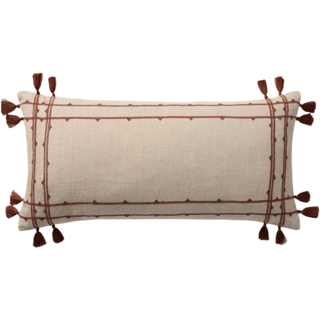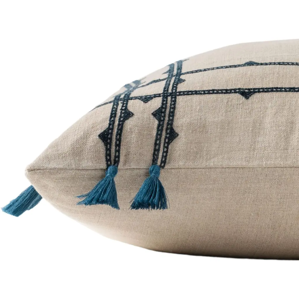 This linen throw pillow features stitched stripes with tassled details, adding a playful bit of texture to living rooms, bedrooms, and more. The 18” x 18” square pillow is woven in India of 100% linen.