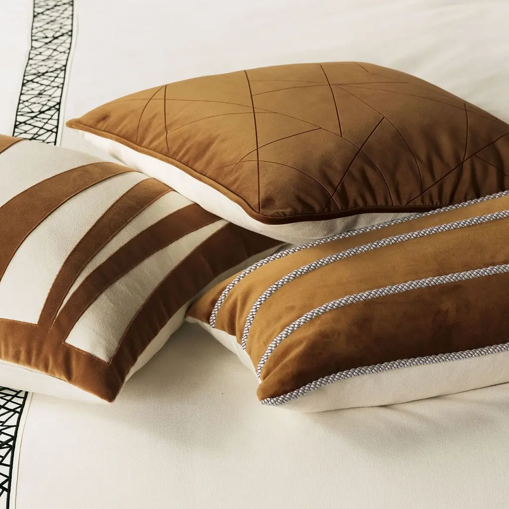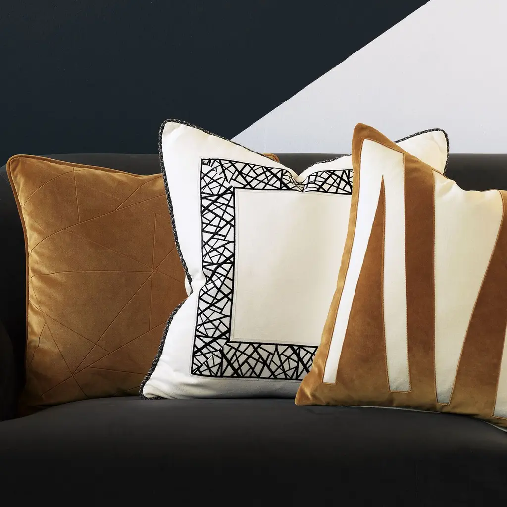 Asher Lasercut Velvet Pillow, Ivory/gold
