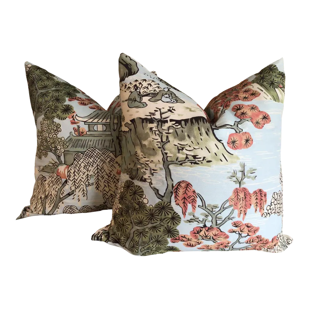 Asian Scenic Robin's Egg Pillow