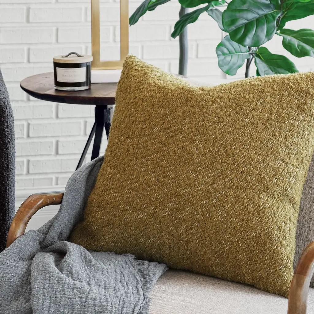 Elevate your living space with the Aspen Alpaca Wool Boucle Pillow, a luxurious decorative accent crafted from a blend of alpaca wool boucle fibers. This pillow features a sophisticated knife edge finish and is self-backed for a seamless look. The included insert ensures plush comfort, while the invisible zipper closure allows for easy care. Designed with a solid pattern, this pillow is a versatile addition to any decor. Please note, it is recommended to dry clean only to maintain its exquisite quality.