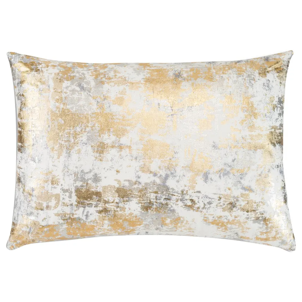 White Velvet with Quilting and shiny gold foil print pillow with knife edge.Size: 20”x 20”FeaturesZipper closureShiny gold foil printInsert includedShape: SquareFabric: VelvetCare Instructions: Dry Clean/ Spot Clean Only