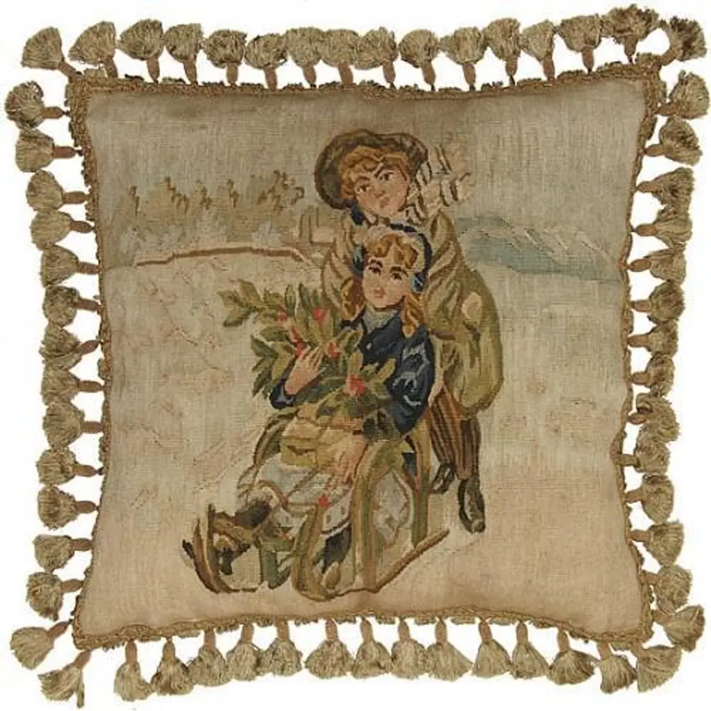 Aubusson Snow White Black Throw Pillow Overall measurements (inches) 20H x 20W x 4D. Overall Condition is New. Style: Aubusson. Dates to circa New.