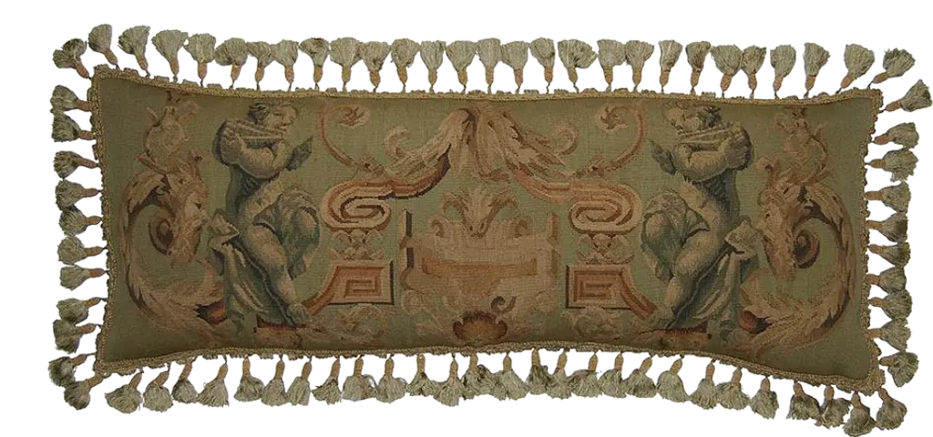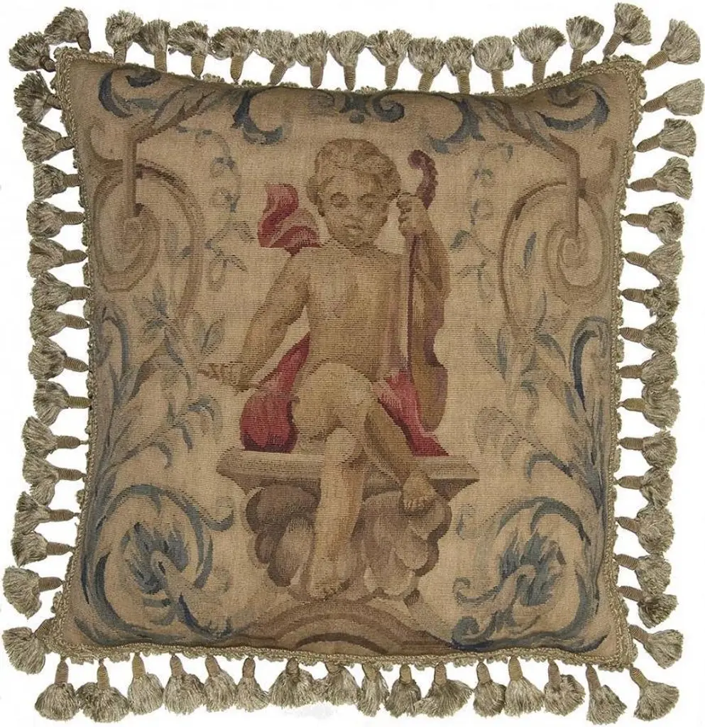 Aubusson Violin Blue Throw Pillow Overall measurements (inches) 22H x 22W x 4D. Overall Condition is New. Style: Aubusson. Dates to circa New.