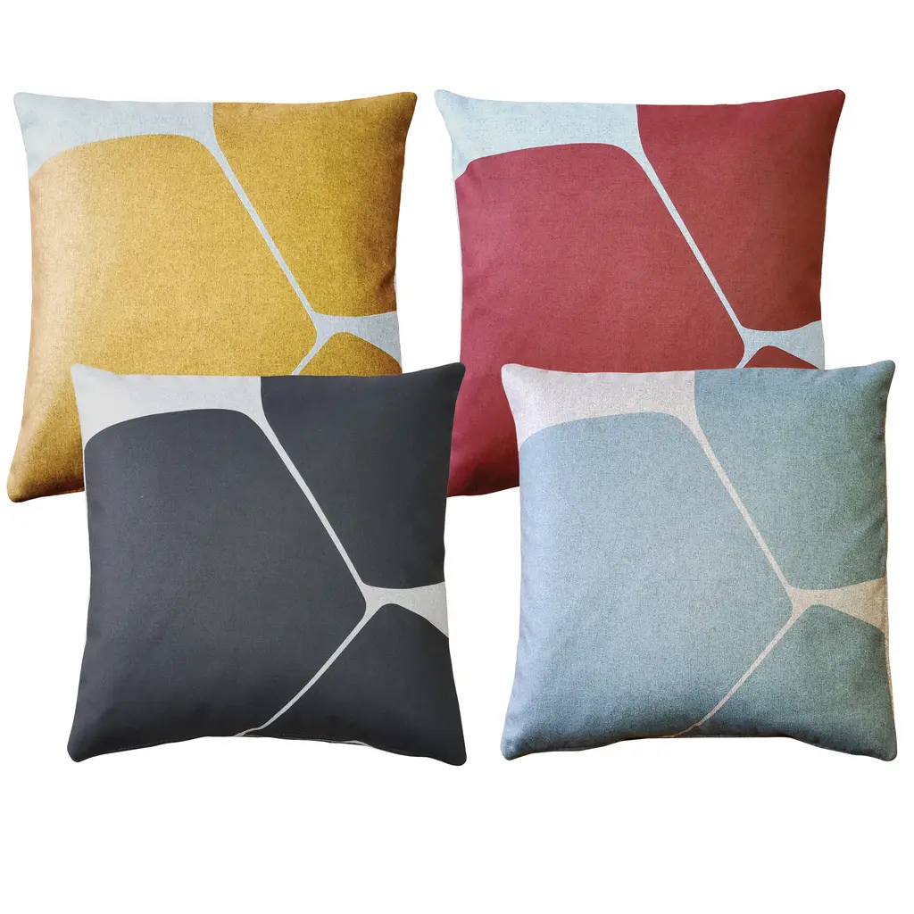 The Aurora Paradiso Blue Throw pillow, with its simple bold pattern, is perfect for color blocking and contemporary design. On their own or combined with the complementary Boketto pillows, the Aurora 19 inch square pillows will add clean elegance to your home. The back of the pillow is plain unprinted light gray felt fabric. From the Petra Kaksonen designer collection. Size: 19"x19" Square Fabric: 100% Polyester Design on front only. The back is light gray felt fabric. Knife edge seams. Inside seams are serged for strength and durability. Hidden zipper closure in bottom seam of pillow cover Dry cleaning is recommended, or machine wash separately in cold water on delicate cycle. Lay flat to dry, iron inside out on low heat. Benjamin Moore best color match (Paradiso-717 - Classic Colors Collection) Made in Canada in Pillow Decor's Vancouver workroom.