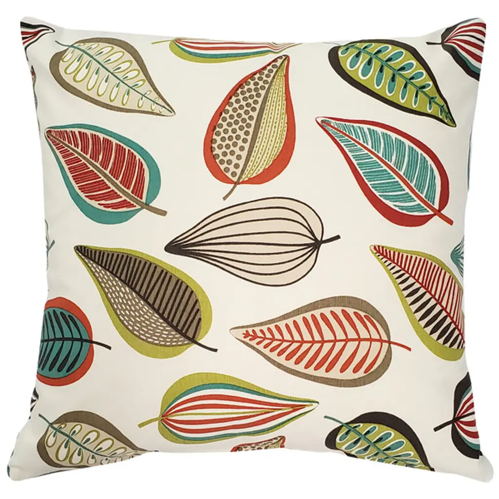 Autumn Leaves Floral Print Outdoor Pillow, Blue, 16"x16"