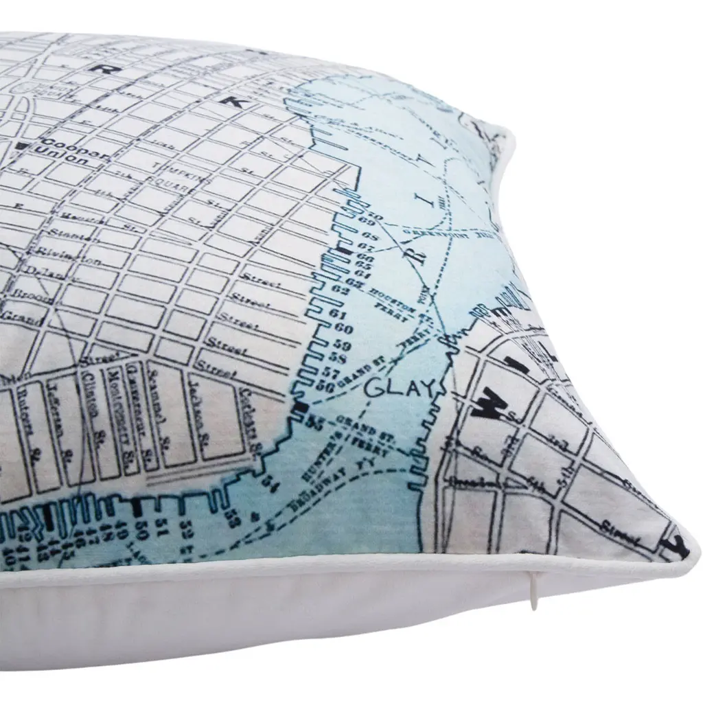 Compose a chic pillowscape on couches and beds with the modern style of this decorative pillow. Printed in graphic detail on a square pillowcase, shades of soft blue, black and white form a map of New York City with a Big Apple-inspired design that turns an ordinary cushion into a captivating work of art. A sumptuous combination of duck feathers and down fill the standard pillow sham with enduring softness, offering comfortable cushioning for every seating or sleeping arrangement.