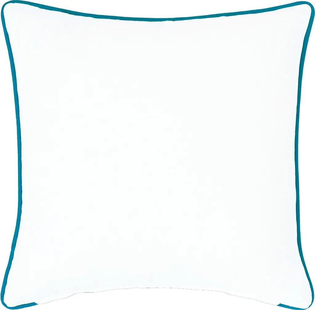 Embroidered detailing adds to the Old World charm of the floral motif adorning the front of this cotton pillow. The reverse is plain white, with teal welt adding finesse to both sides. Made in the USA, the pillow is generously filled with plume feathers for luxe loftiness. Hidden zipper closure.