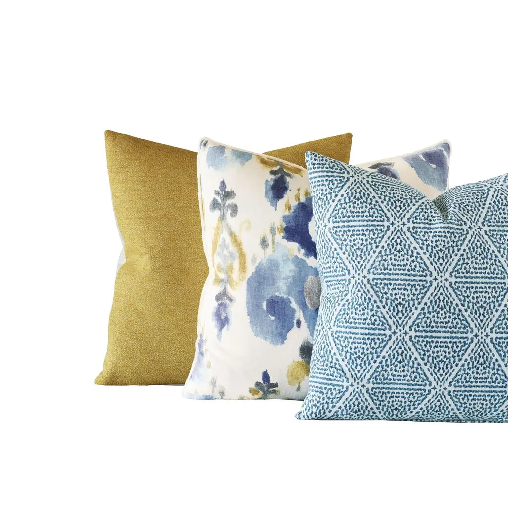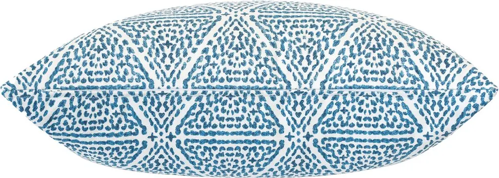 A blue-on-white pointillist motif adorns both sides of this cotton-and-linen throw pillow. Made in the USA, the pillow is generously filled with plume feathers for lush comfort. Zipper closure.