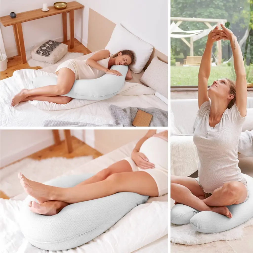 Designed with new and expecting moms in mind, the B.Love U-Shape Pregnancy & Nursing Pillow provides the ultimate support from pregnancy through postpartum and beyond. Its versatile 2-in-1 design ensures restful sleep throughout pregnancy, then seamlessly transitions into a supportive nursing pillow to keep both you and your baby comfortable during feeding. As your body changes, this pillow adapts to your shape, relieving common pregnancy discomforts like back pain, tight hips, abdominal pressure, and heavy legs. The soft, ergonomic support helps you find a comfortable sleeping position, so you can wake up feeling more rested. Once your little one arrives, the slight incline provides the perfect height for nursing or bottle-feeding, while the built-in fastening system keeps the pillow securely in place for hands-free support. Crafted in Europe with organic cotton and Oeko-Tex® certified, non-toxic materials, the B.Love Pillow is as safe as it is comfortable. Whether you’re using it during pregnancy, nursing, or simply for extra support while reading or relaxing, this pillow is designed to be a lasting companion through every stage of motherhood.