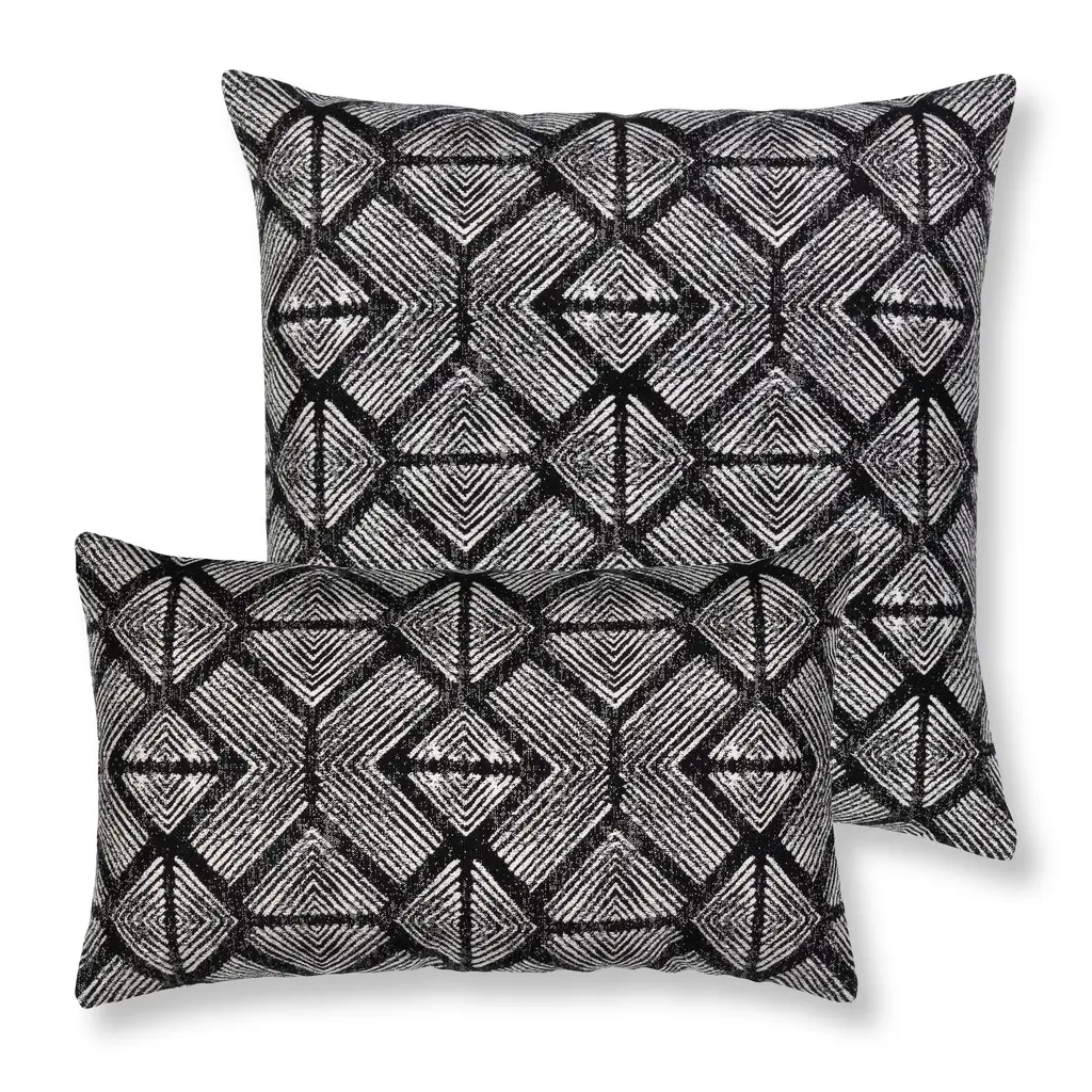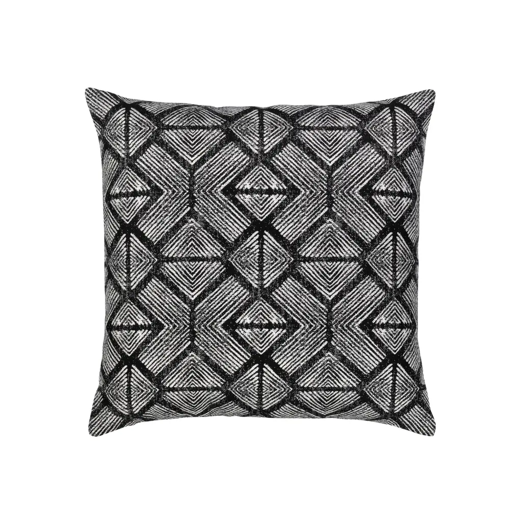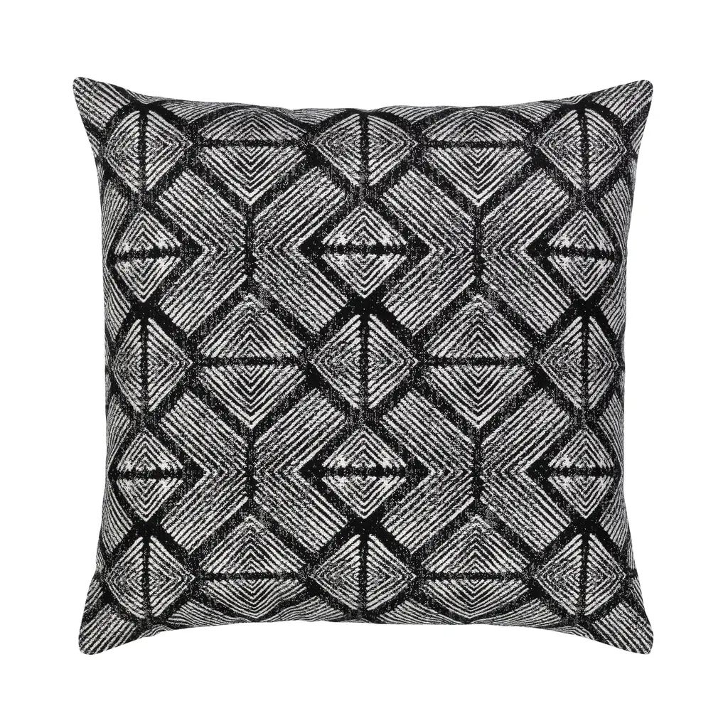 Influenced by tribal art patterns, the Bakuba pillow features a slightly distressed diamond motif in a monochromatic color. The sharp angles and complex spacing of the pattern give this pillow contemporary appeal. Woven entirely from Sunbrella yarns, this pillow will resist water, stains and fading for years to come. Features