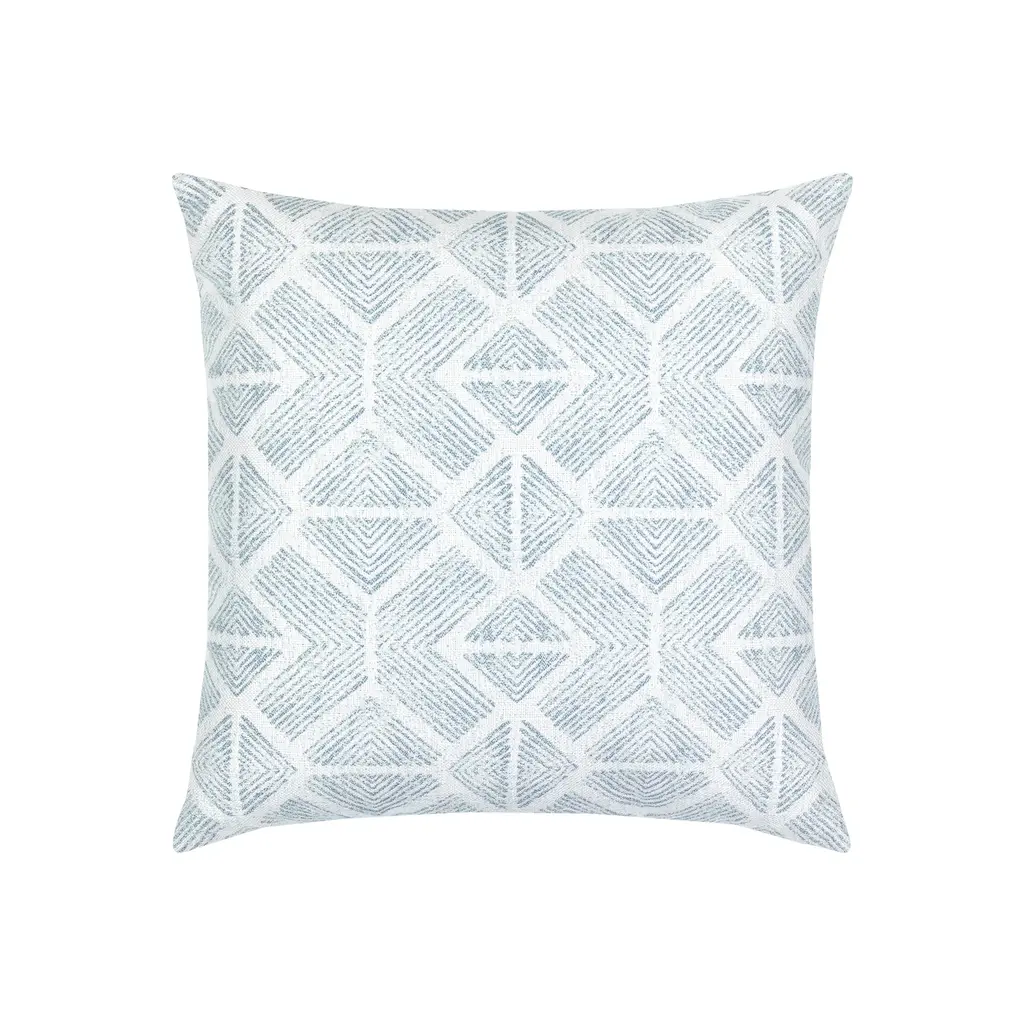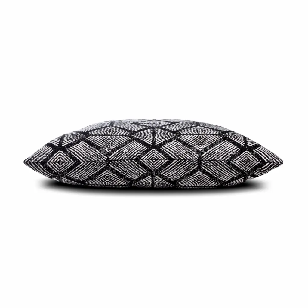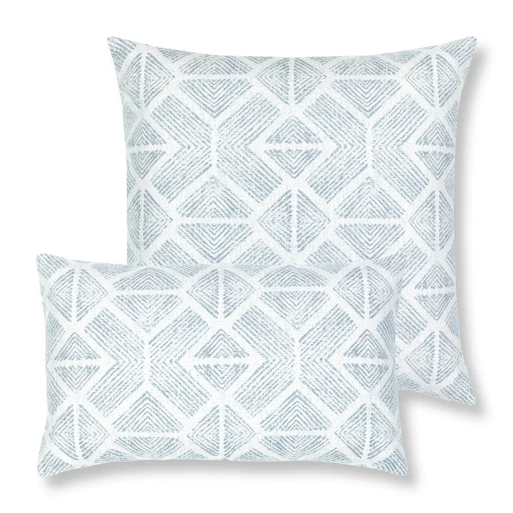 Influenced by tribal art patterns, the Bakuba pillow features a slightly distressed diamond motif in a monochromatic color. The sharp angles and complex spacing of the pattern give this pillow contemporary appeal. Woven entirely from Sunbrella yarns, this pillow will resist water, stains and fading for years to come. Features
