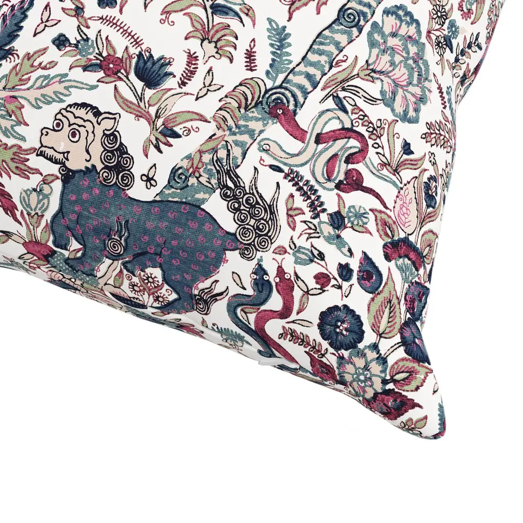 Dress up a favorite sofa or chair with this pillow, made with a unique Bali Lion upholstery print. Reversible; pattern on both sides. Insert included.
